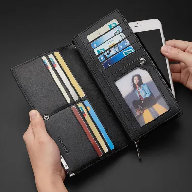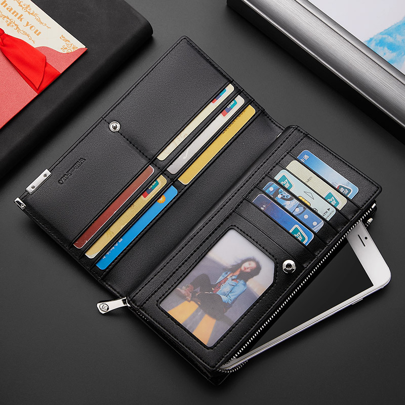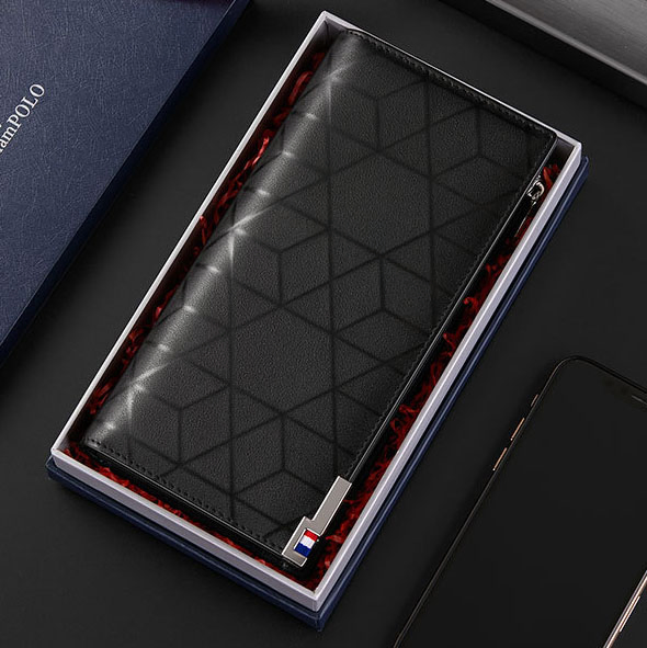 Color: The wallet features a classic black color, providing a sleek and versatile option.Brand: Created by William POLO, it exemplifies the brand’s dedication to high-quality craftsmanship.Upper Material: Made from genuine leather, the wallet ensures both durability and a refined touch.Folding: The 3-fold design offers expanded organization while maintaining a compact shape.Pattern: Its solid color delivers a timeless and elegant look.Hardness: The wallet’s soft texture enhances comfort and flexibility in everyday use.Length: Measuring 7.55 inches, it provides ample space for storing essentials without bulk.Width: With a width of 3.86 inches, the wallet maintains a slim profile that fits comfortably in your pocket.