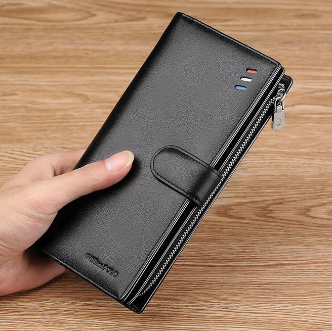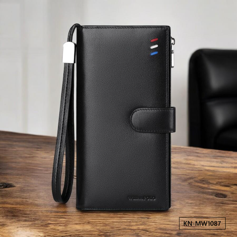 Color: The wallet is available in a sleek black, offering a sophisticated and versatile appearance.Brand: Made by William POLO, it reflects the brand's commitment to high-quality craftsmanship.Upper Material: Constructed from genuine leather, the wallet provides both durability and a luxurious feel.Folding: The 3-fold design allows for organized storage while maintaining a compact and stylish form.Pattern: The solid color adds a timeless and classic touch to the wallet.Hardness: The wallet’s soft texture enhances comfort and ease of use.Length: Measuring 7.48 inches, it offers ample space for your essentials without bulk.Width: At 3.74 inches wide, the wallet maintains a slim profile that fits comfortably in your pocket.