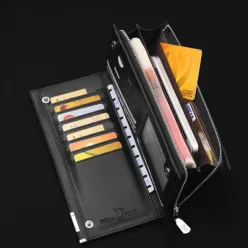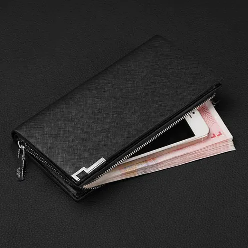 Color: This wallet boasts a sophisticated black cross pattern, adding a subtle yet stylish detail.Brand: It is crafted by William Polo, renowned for its dedication to luxury and quality.Upper Material: The wallet uses genuine leather, offering both elegance and lasting durability.Folding: Its 3-fold design allows for expanded organization and easy access to your essentials.Pattern: Featuring a solid color with a textured cross pattern, it combines classic and contemporary elements.Hardness: The soft leather provides a comfortable feel and flexible use.Length: With a length of 19.0 cm, the wallet accommodates a variety of items while remaining sleek.Width: Measuring 9.0 cm in width, it balances practicality with a slim, streamlined silhouette.