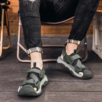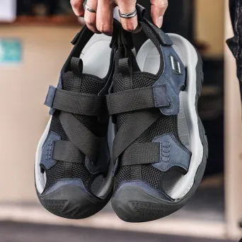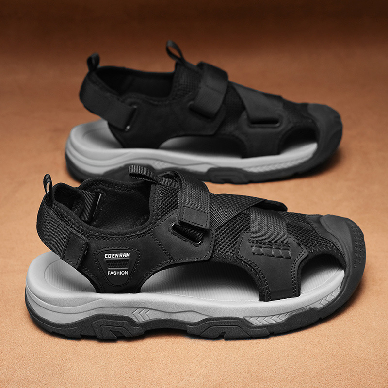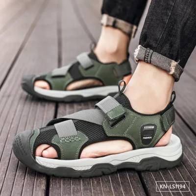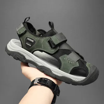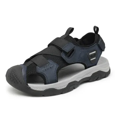 Color: The shoe is offered in black, blue, and green, providing a range of stylish options to choose from.Upper Material: Constructed from genuine C-o-w-h-i-d-e leather, the shoe's upper ensures durability and a luxurious appearance.Outsole Material: A rubber sole offers the shoe reliable traction and flexibility for comfortable wear.Toe Shape: Featuring a closed toe design, the shoe prioritizes protection and comfort.Closure Type: It secures with Velcro, allowing for easy adjustment and a snug fit.Pattern Type: The shoe displays a solid pattern, enhancing its sleek and timeless aesthetic.Features: Engineered to be breathable, wear-resistant, lightweight, and equipped with anti-slip properties, making it suitable for various activities.