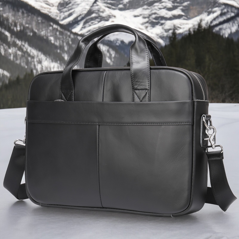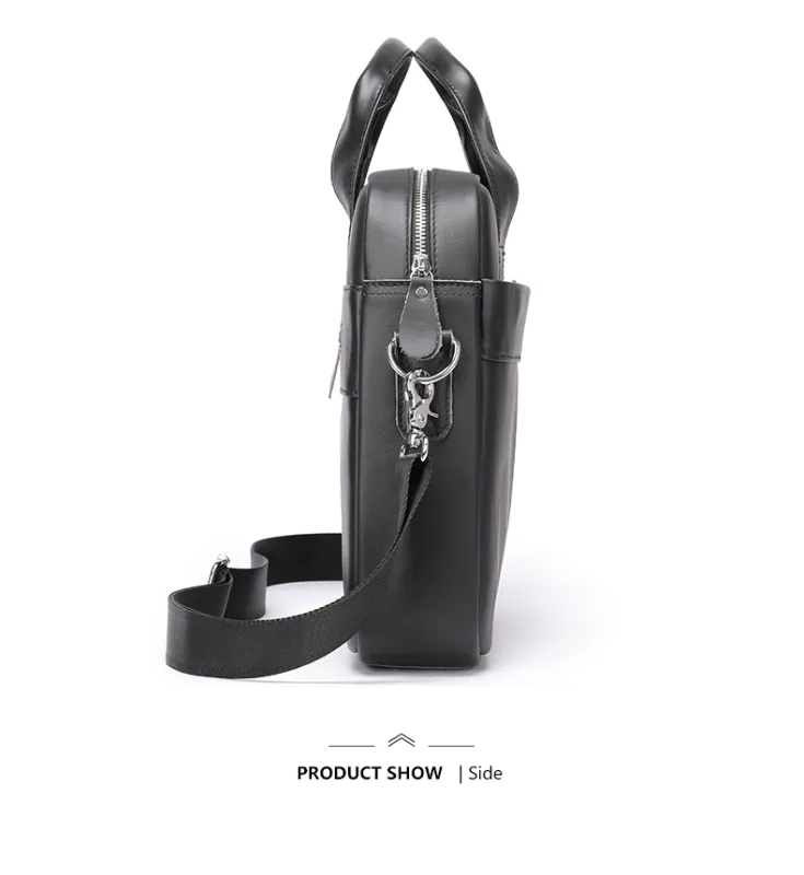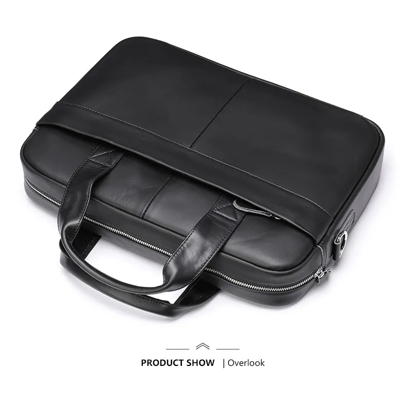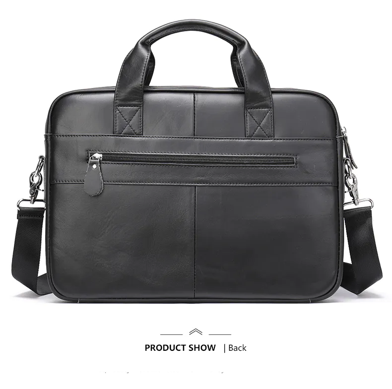 Color: The bag comes in a sleek black, offering a versatile and modern look.Brand: MVA designs this bag, known for its blend of style and functionality.Upper Material: The bag is made from genuine leather, ensuring a luxurious and long-lasting exterior.Number of Shoulder Straps: It features a single shoulder strap, providing ease and comfort for carrying.Opening Method: A zipper closure secures the contents and allows for easy access.Hardness: The bag has a soft hardness, giving it a flexible and comfortable feel.Shape: Styled as a handbag, it combines elegance with practical usability.Pattern: The solid color pattern offers a clean and timeless aesthetic.Lining Material: Inside, the polyester lining adds durability and a smooth interior touch.Features: The bag is waterproof and multi-functional, including a compartment for a 14” computer for enhanced versatility.Size: Measuring 39.5 cm x 6.7 cm x 28.5 cm, the bag provides ample space while maintaining a sleek profile.Weight: Weighing 850 grams, the bag delivers a sturdy build that remains easy to handle.