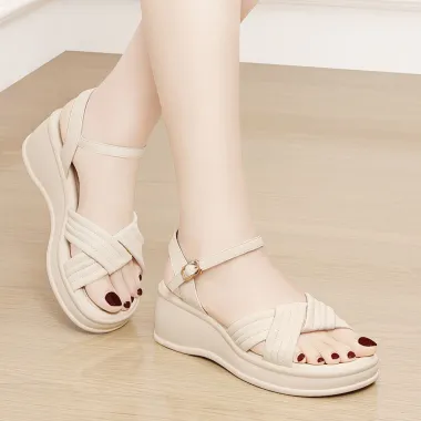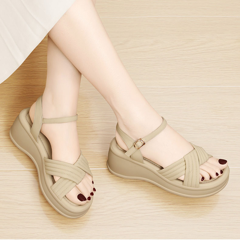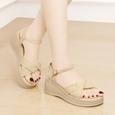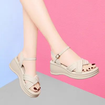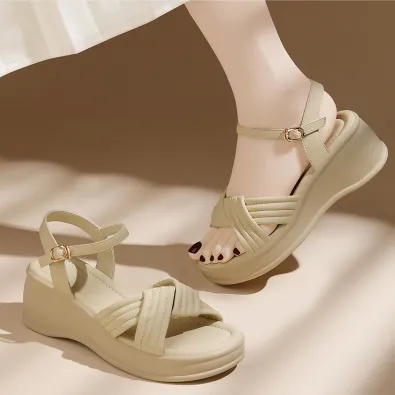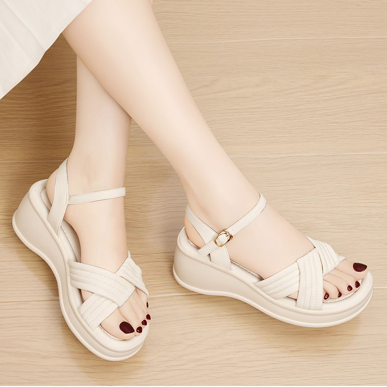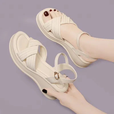 Color: Choose between pristine white and vibrant yellow white for a fresh look.Upper Material: PU leather offers a sleek and durable exterior.Outsole Material: The PU sole provides cushioning and reliable traction.Insole Material: PU leather ensures a comfortable and supportive footbed.Toe Shape: The open toe design allows for enhanced breathability.Closure Type: The one-piece buckle strap ensures a secure and adjustable fit.Heel Height: The 5.5 cm heel height delivers a stylish lift while maintaining comfort.Pattern Type: The solid color pattern presents a clean and classic appearance.Features: These sandals are breathable, wear-resistant, lightweight, and anti-slip, combining functionality with style