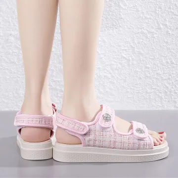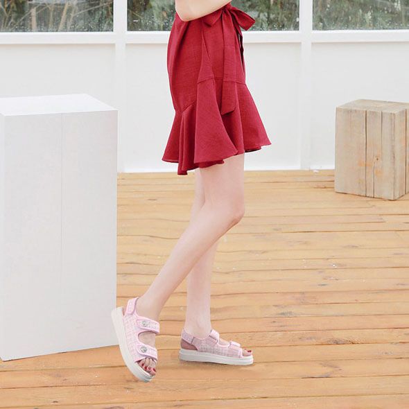 Color: The sandal is available in sleek black, vibrant pink, and clean white.