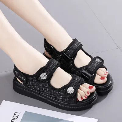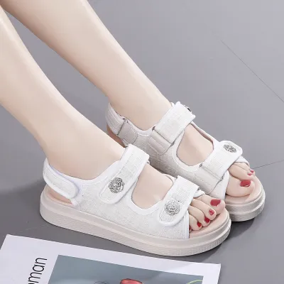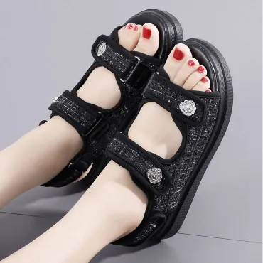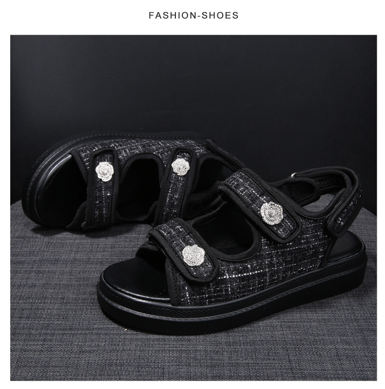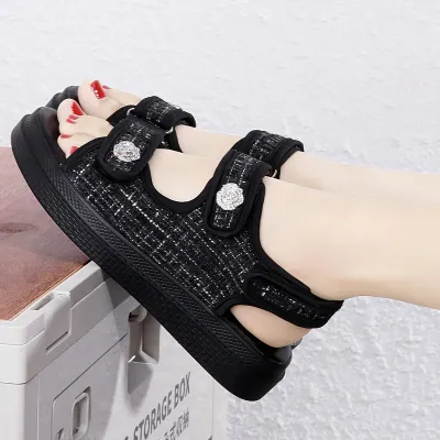 Upper Material: The combination of mesh material and net ensures excellent breathability and flexibility.Outsole Material: The PU sole offers durable support and dependable traction.Insole Material: PU leather provides soft cushioning for comfort during extended wear.Toe Shape: The open toe design allows for increased ventilation and a stylish look.Closure Type: Velcro enables easy adjustability and a secure fit.Heel Height: The 3.5 cm heel height provides a subtle lift with lasting comfort.Pattern Type: The solid color pattern gives a clean and modern appearance.Features: The sandal is breathable, wear-resistant, lightweight, and anti-slip for optimal practicality and comfort.