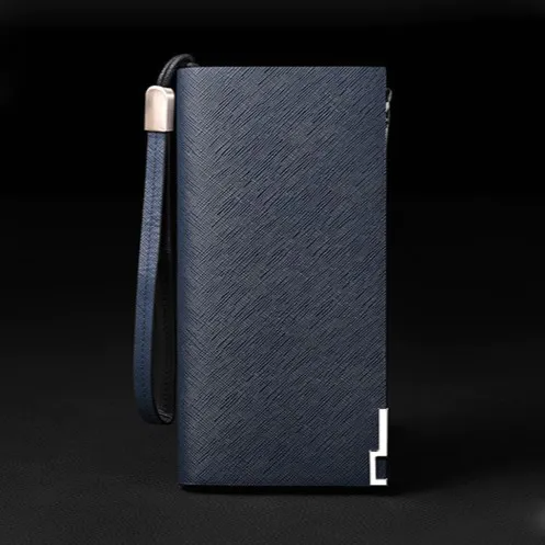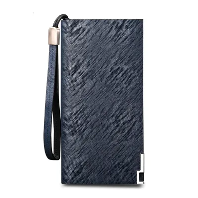 Color: This wallet features a distinctive blue cross pattern that adds a touch of modern flair.Brand: It is designed by William Polo, a brand known for blending style with functionality.Upper Material: Crafted from genuine leather, the wallet promises durability and a sophisticated look.Folding: The 3-fold design maximizes storage space while maintaining a compact structure.Pattern: With its solid color base and cross pattern overlay, it offers a unique yet refined aesthetic.Hardness: The wallet's soft texture ensures comfort and flexibility for daily use.Length: Measuring 19.0 cm in length, it provides ample space for larger items like bills and documents.Width: At 9.0 cm wide, it maintains a sleek profile without compromising on storage capacity.