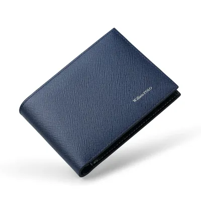 Color: This wallet comes in a vibrant blue, making a bold statement while remaining versatile.Brand: It is designed by William Polo, a brand celebrated for its refined and elegant accessories.Upper Material: The wallet features genuine leather, which ensures both a luxurious feel and durability.Folding: Its 2-fold structure provides a compact yet efficient way to organize your essentials.Pattern: The solid blue color offers a sleek and modern look that fits various styles.Hardness: The wallet's soft leather enhances comfort and flexibility for everyday use.Length: At 11.0 cm long, it provides a practical size for carrying cards and cash without bulk.Width: With a width of 8.8 cm, the wallet maintains a slim profile that easily fits in pockets.