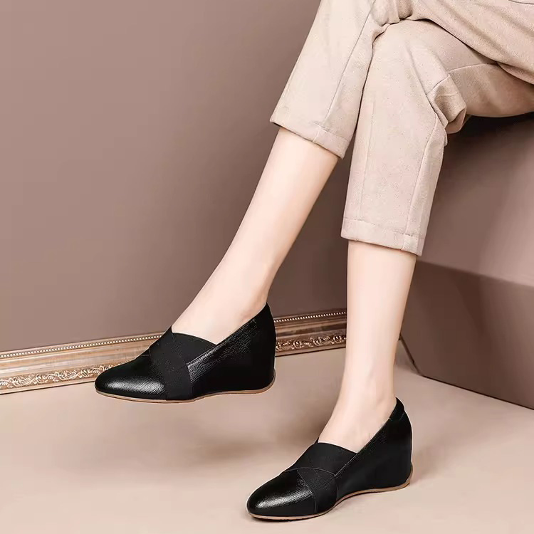 Upper Material: PU leather offers a stylish and durable finish.Outsole Material: The PU sole ensures flexible support and reliable traction.Insole Material: PU leather provides cushioned comfort for extended wear.Toe Shape: The round head design adds a comfortable and timeless fit.Closure Type: The slip-on style allows for easy and convenient wearing.Heel Height: The 5.5 cm heel height offers a fashionable lift while maintaining comfort.Pattern Type: The solid color pattern presents a sleek and versatile look.Features: The sandal is breathable, wear-resistant, lightweight, and anti-slip for both practicality and style.