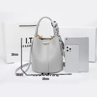 Color: Choose from Brown, Black, Gray, Milk Apricot, or Milky White for a range of elegant options.Upper Material: Crafted from genuine leather for a luxurious and durable finish.Hardness: The handbag features a soft texture for comfortable use.Number of Shoulder Straps: Includes a single shoulder strap for easy carrying.Opening Method: Secure your belongings with a stylish magnetic clasp.Lining Texture: The interior is lined with smooth PU leather.Pattern Type: The handbag showcases a classic solid color design.Size: It measures 7.48" in length, 7.87" in height, and 7.48" in width.
