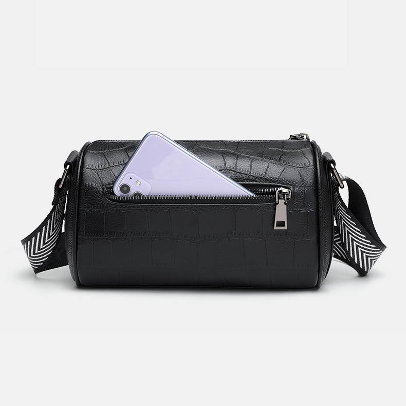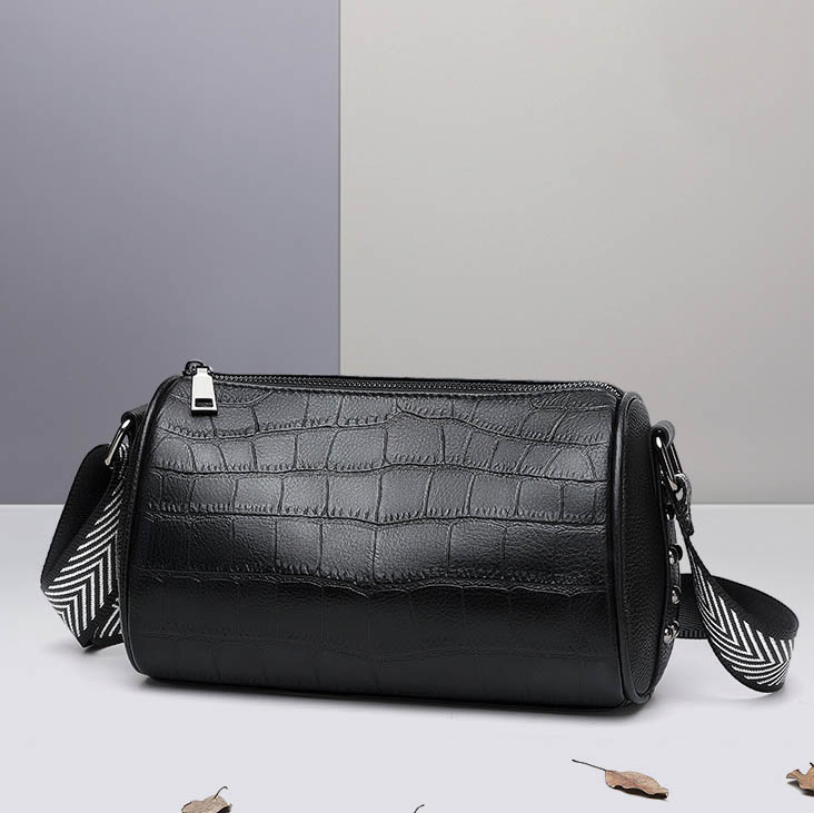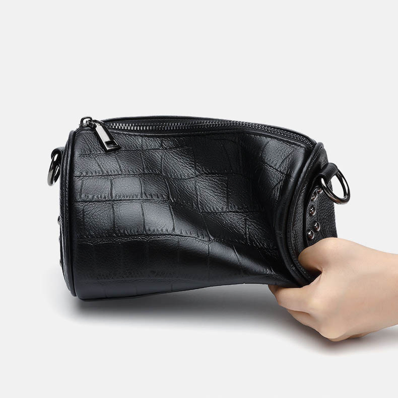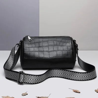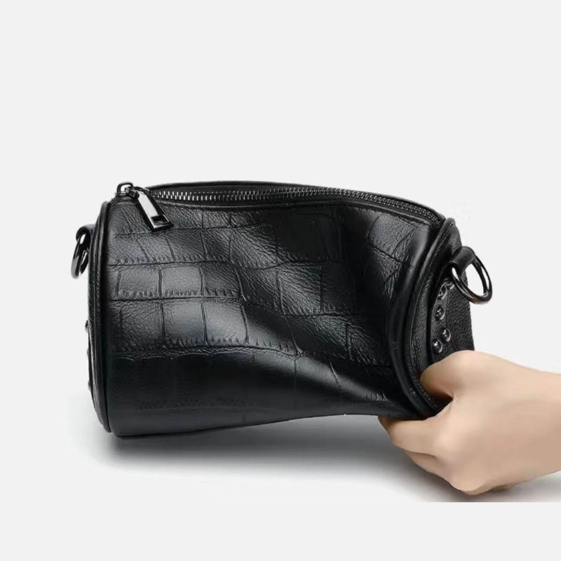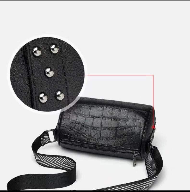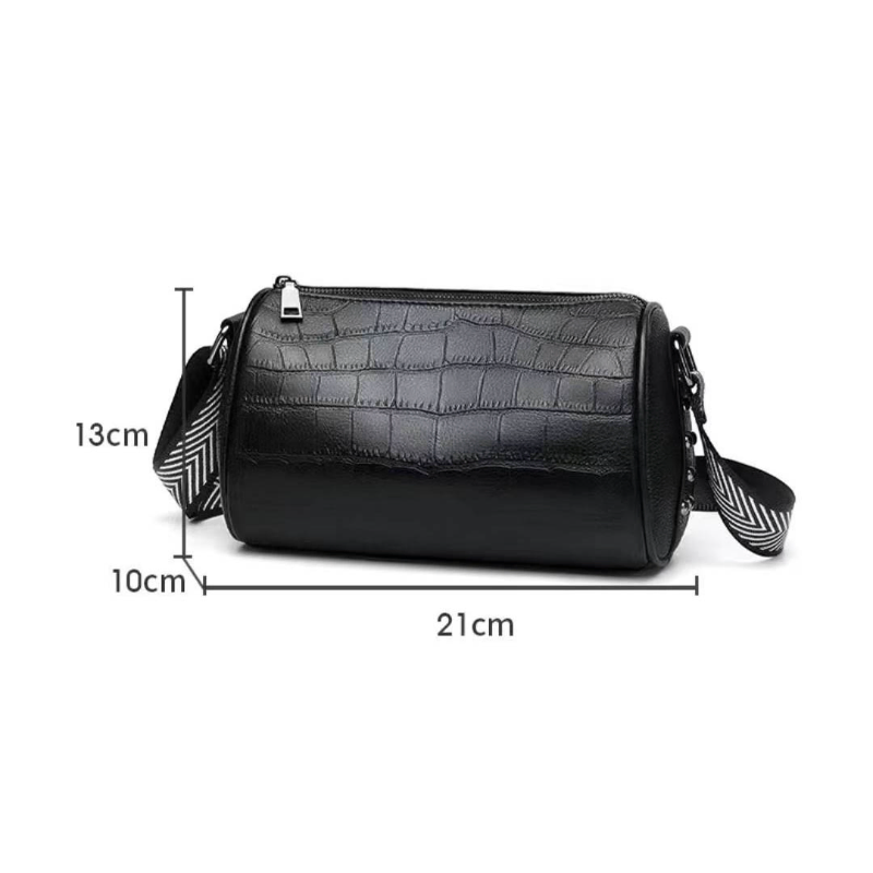 Color: The handbag comes in a classic Black, offering a versatile and sophisticated look.Upper Material: Made from genuine C-o-w-h-i-d-e leather, it ensures both durability and a luxurious finish.Hardness: The soft hardness provides a comfortable and flexible structure.Number of Shoulder Straps: It features a single shoulder strap for easy and stylish carrying.Opening Method: Securely access your belongings with the practical zipper closure.Lining Texture: The interior is lined with PU Leather, adding a smooth and refined touch.Pattern Type: The solid pattern maintains a sleek and timeless appearance.Size: Measuring 8.26" (L) x 5.11" (H) x 3.93" (W), this handbag offers a compact yet functional design