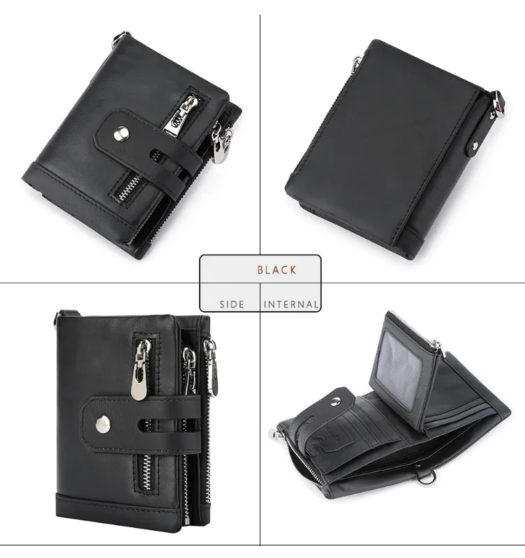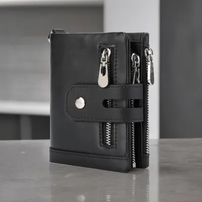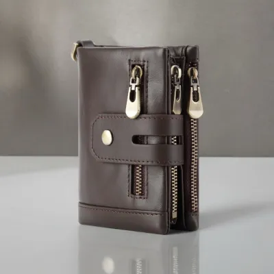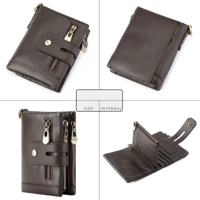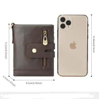 Color: This wallet comes in versatile black and classic brown.Upper Material: Crafted from genuine leather, it offers a premium feel and durability.Folding: It features a practical 2-fold design for easy access and storage.Lining: The interior is lined with polyester, ensuring a smooth finish and added strength.Pattern: It showcases a solid color pattern, providing a sleek and timeless look.Length: Measuring 4.52 inches in length, it fits comfortably in your hand.Width: At 3.74 inches wide, it slips easily into your pocket.