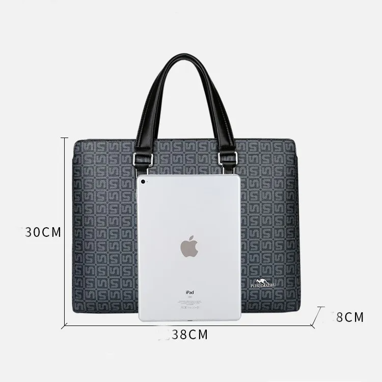 Color: The bag is available in stylish Black and Navy Blue.Brand: PUFANDAISHU creates this modern and functional accessory.Upper Material: PVC and Cloth combine to form a durable and flexible surface.Number of Shoulder Straps: It features a single strap for easy carrying.Opening Method: The bag closes securely with a zipper.Hardness: It provides a soft, comfortable touch.Shape: The bag is designed as a versatile Men’s Hand Bag.Pattern: It sports a solid color for a sleek and understated appearance.Lining Material: Polyester Cotton lines the interior, enhancing comfort and durability.Features: It is breathable, waterproof, wear-resistant, multifunctional, and can hold a 15.6-inch computer.Size: The dimensions are 14.96” x 11.8” x 3.15”.Weight: It has a weight of 1.2 kilograms, making it sturdy yet manageable.