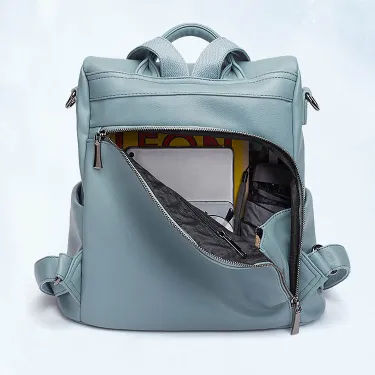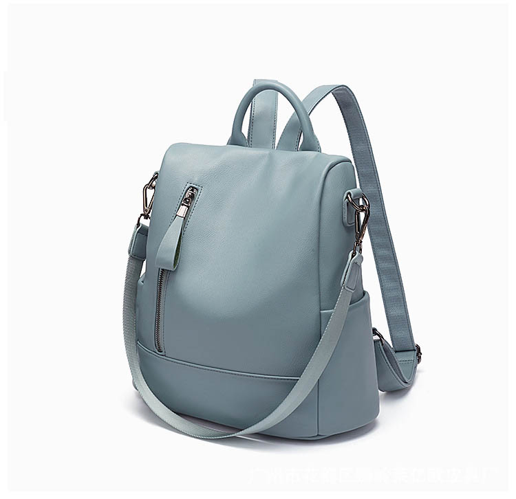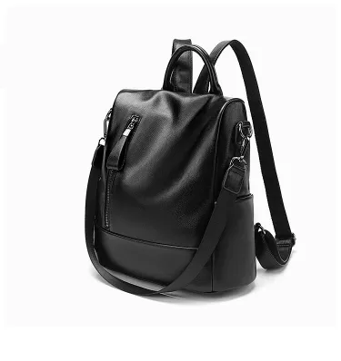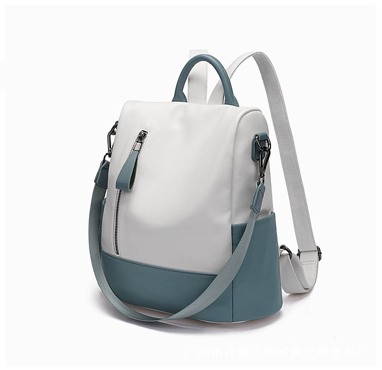 Color: The backpack is available in Black, Cloud Orchid, and White, offering a selection of sophisticated hues.Upper Material: Genuine leather provides a premium and durable exterior.Hardness: The soft material ensures a comfortable and flexible feel.Number of Shoulder Straps: Double shoulder straps deliver balanced and comfortable carrying.Opening Method: A zipper closure allows for secure and convenient access to your belongings.Lining Texture: Polyester lining adds a smooth and practical interior touch.Pattern Type: The solid design offers a clean and timeless look.Accommodated Computer Size: The backpack fits a 10-inch computer, suitable for compact laptops.Size: Measuring 12.99 inches in length, 12.20 inches in height, and 6.29 inches in width, it provides ample space in a compact design.Features: Breathable, waterproof, and wear-resistant attributes ensure the backpack is both practical and durable.