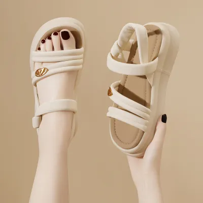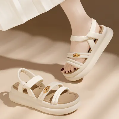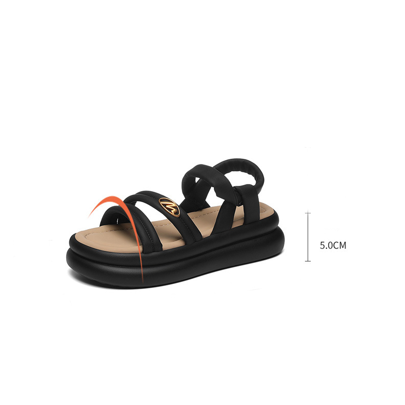 Color Choices: Available in versatile beige and classic black for easy pairing with any outfit.Upper Material: Made from PU leather, the upper combines durability with a stylish finish.Outsole Material: The PU sole offers lightweight flexibility and long-lasting wear.Insole Material: PU leather insoles provide comfortable cushioning for all-day support.Toe Shape: The open-toe design enhances breathability and gives a modern, airy look.Closure Type: The overshoes closure ensures a secure fit while adding a unique design element.Heel Height: The 5 cm heel provides a comfortable lift, perfect for everyday use.Pattern Type: The solid pattern maintains a clean and timeless appearance.Additional Features: These sandals are breathable, wear-resistant, lightweight, and feature an anti-slip sole for reliable traction.