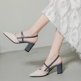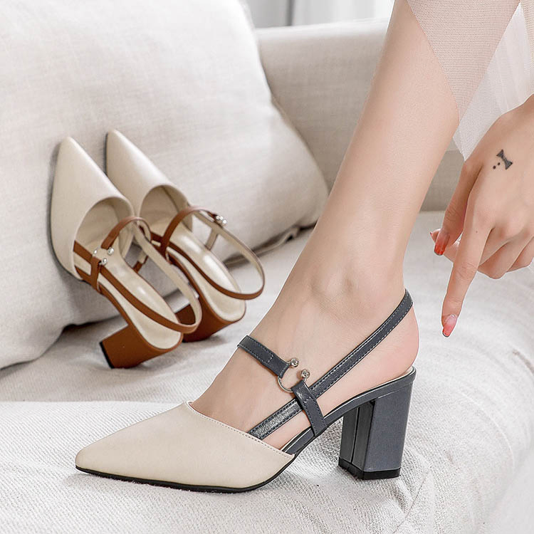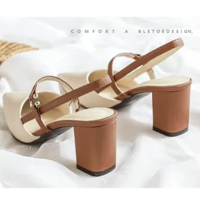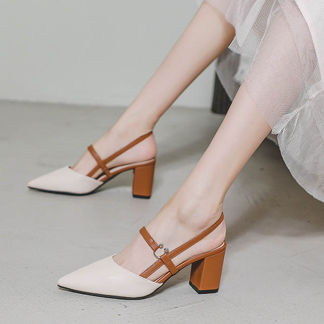 Color: The sandal is available in soft light brown and vibrant blue.Upper Material: Microfiber leather provides a sleek and durable finish.Outsole Material: The rubber sole ensures reliable grip and long-term wear.Insole Material: PU leather delivers comfortable cushioning for all-day use.Toe Shape: The pointed toe design adds a stylish and elegant touch.Closure Type: The slip-on style allows for quick and easy wearing.Heel Height: The 6.5 cm heel height offers a significant lift while maintaining comfort.Pattern Type: The solid color pattern provides a classic and versatile look.Features: The sandal combines breathability, wear-resistance, a lightweight build, and anti-slip properties for practical and fashionable wear.
