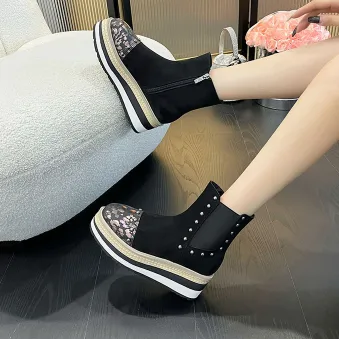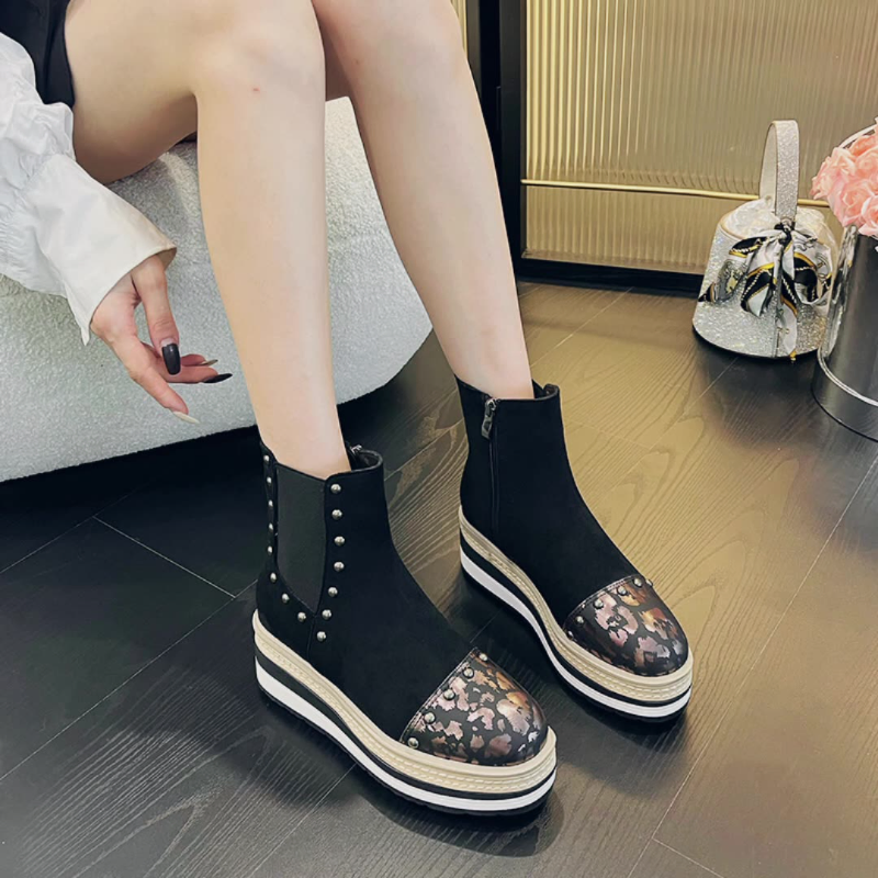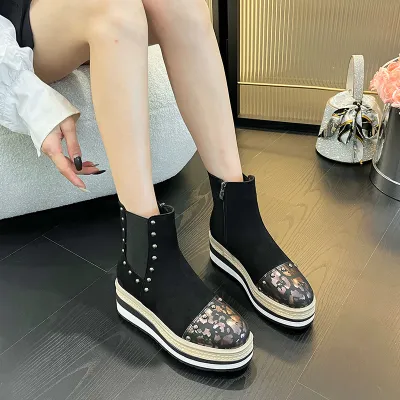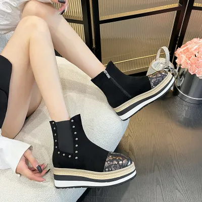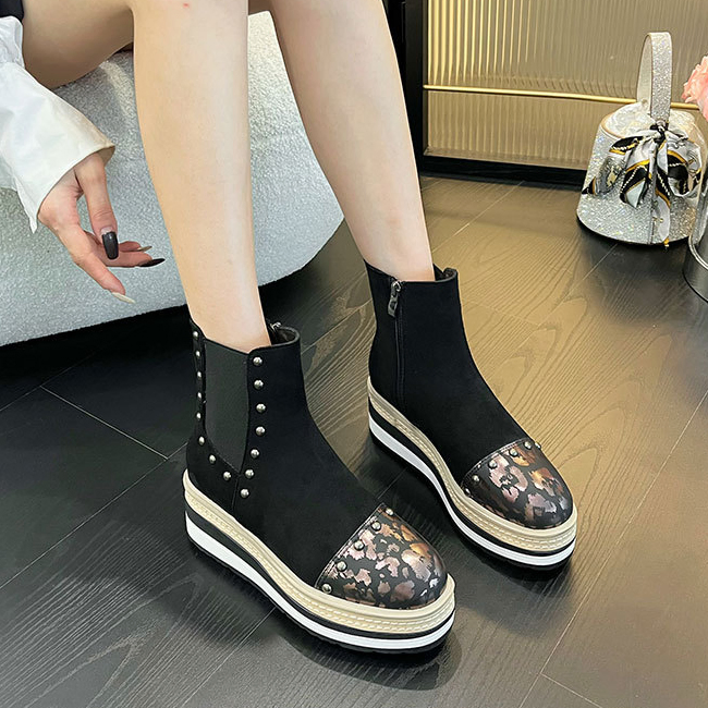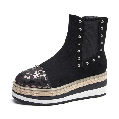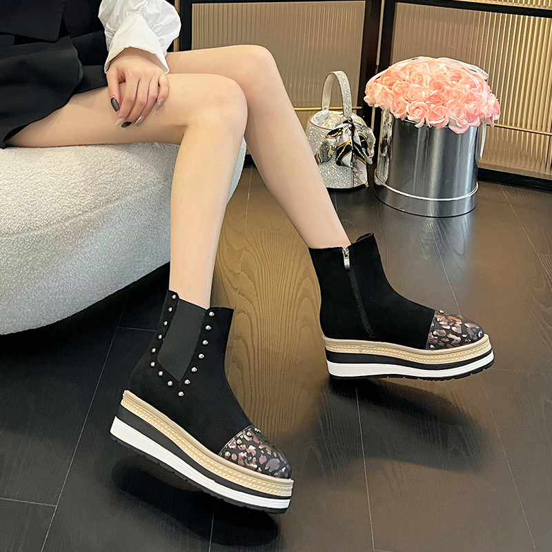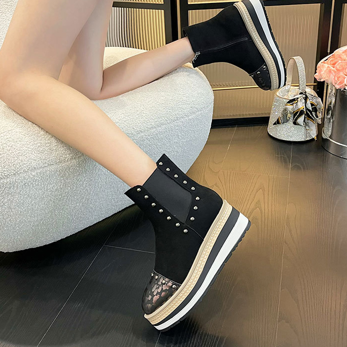 Color: The boot is available in Black, providing a classic and versatile option that complements any wardrobe.Upper Material: The cow suede leather upper offers a soft touch and sturdy construction, ensuring both elegance and durability.Outsole Material: The rubber sole provides excellent traction and flexibility, supporting a comfortable and secure stride.Insole Material: The PU Leather insole adds plush cushioning and support, enhancing overall comfort during wear.Toe Shape: The round head toe shape allows for ample room and comfort, accommodating natural toe movement.Closure Type: The slip-on design ensures easy on and off, offering convenience and a snug fit without the need for laces.Pattern Type: The solid pattern delivers a sleek and simple aesthetic, making the boot suitable for a variety of occasions.Features: Crafted to be breathable, wear-resistant, lightweight, and anti-slip, this boot combines functionality with comfort for everyday use.
