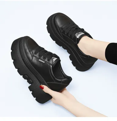 Color: The shoe comes in Black and White, providing classic and versatile color choices.Upper Material: Genuine leather offers a premium and durable upper.Outsole Material: The PU rubber combination sole ensures reliable traction and durability.Insole Material: PU leather lines the insole for added comfort and cushioning.Toe Shape: The round head design allows for a comfortable and spacious fit.Closure Type: Lace-up closures provide a secure and adjustable fit.Pattern Type: The solid pattern gives the shoe a sleek and modern appearance.Features: The shoe is breathable, wear-resistant, lightweight, and features anti-slip properties for optimal comfort and stability.