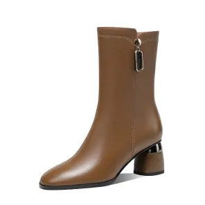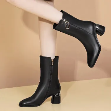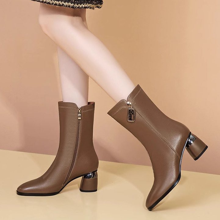 Color: Offered in Black and Brown, these boots provide classic and versatile options to suit any style.Upper Material: The PU Leather upper delivers a sleek and durable finish, ensuring both elegance and longevity.Outsole Material: The rubber sole provides reliable traction and flexibility, promoting a stable and comfortable stride.Insole Material: The PU Leather insole offers cushioned comfort, making the boots suitable for prolonged wear.Toe Shape: The pointed toe shape adds a touch of sophistication, while maintaining a snug and stylish fit.Closure Type: The side zipper allows for effortless on and off, providing a secure and adjustable fit.Pattern Type: The solid pattern offers a timeless and clean look, versatile enough for various occasions.Features: Designed to be breathable, wear-resistant, lightweight, and anti-slip, these boots combine practicality with comfort for everyday use.
