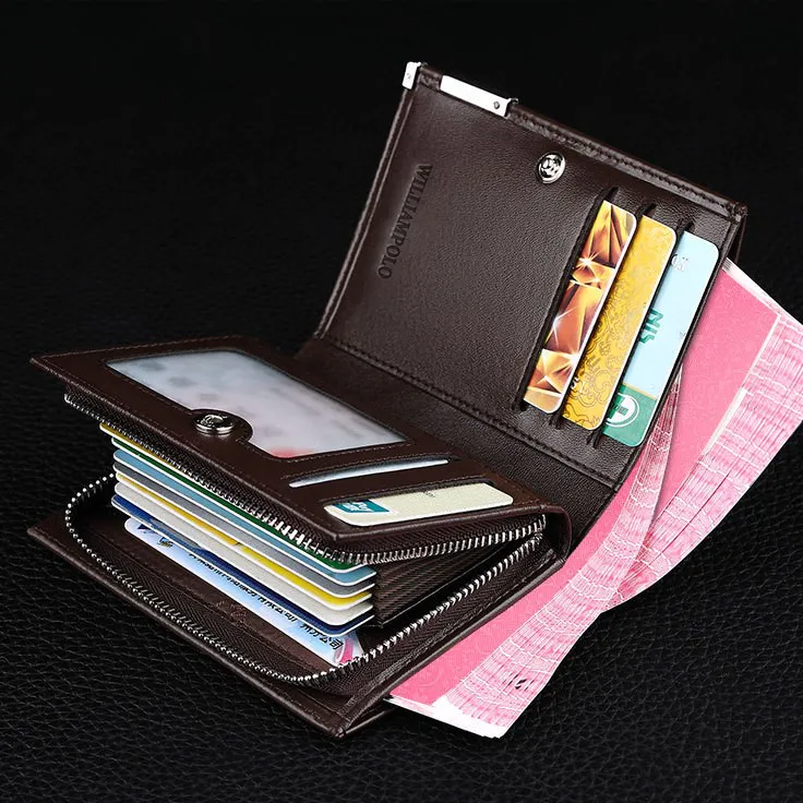 Color: The card holder is available in a rich, brown hue.Brand: William Polo delivers high-quality craftsmanship with this card holder.Upper Material: This card holder is made from genuine leather, ensuring a premium feel.Folding: It features a practical three-fold structure for organized storage.Lining: Polyester lining provides a robust and smooth interior.Pattern: The card holder boasts a solid color design for a classic look.Size: Measuring 11.8 ” by 9.5 ” by 2.2 ”, it offers a compact and functional size.Weight: Weighing 350 grams, the card holder feels substantial and durable.