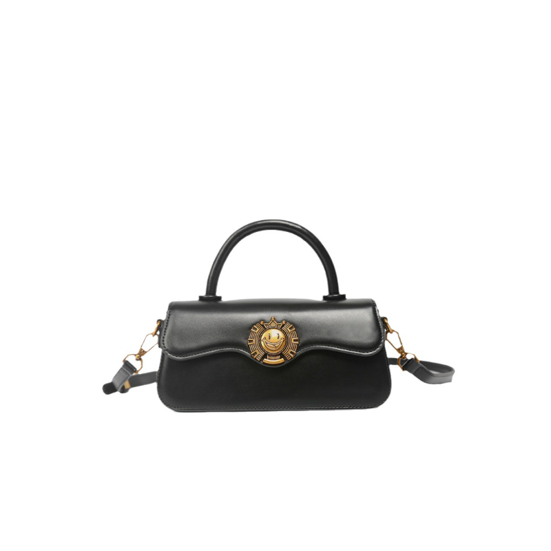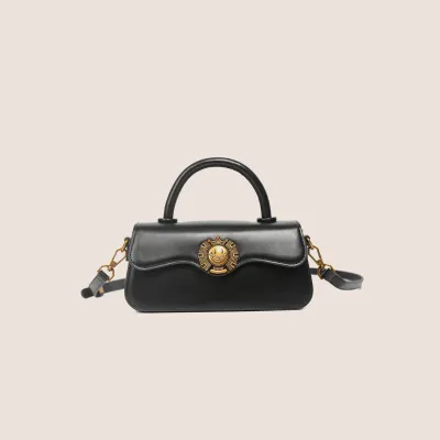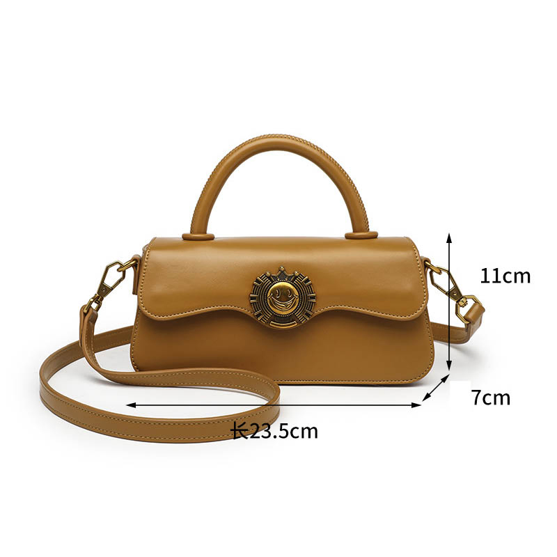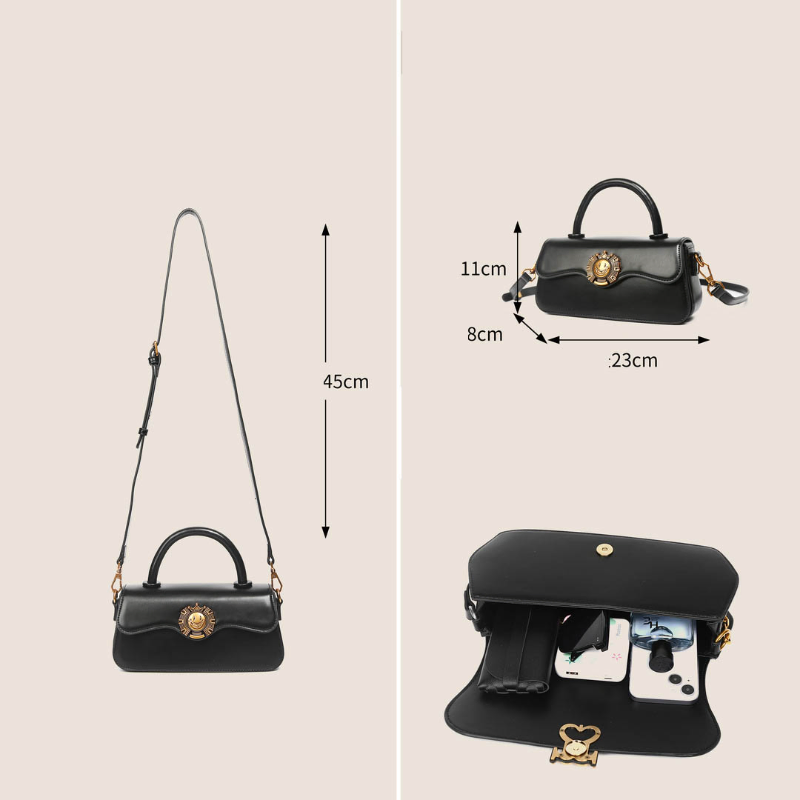Color: The handbag features a stylish combination of black and brown, offering a sophisticated and versatile look.Upper Material: It is crafted from PU leather, providing a smooth and durable finish.Hardness: The bag has a soft texture, ensuring comfort and flexibility.Number of Shoulder Strap: It includes a single shoulder strap for convenient and hands-free carrying.Opening Method: The handbag secures with a magnetic clasp, providing an easy and secure closure.Lining Texture: The interior is lined with PU leather, adding a luxurious touch and cohesive appearance.Pattern Type: It has a solid pattern, contributing to its classic and elegant design.Size: Measuring 9.05 inches in length, 4.33 inches in height, and 2.75 inches in width, the handbag offers a compact yet practical profile.