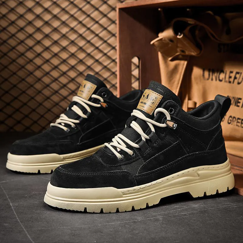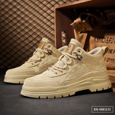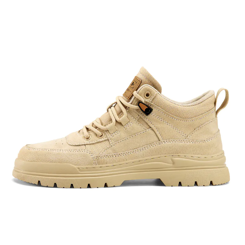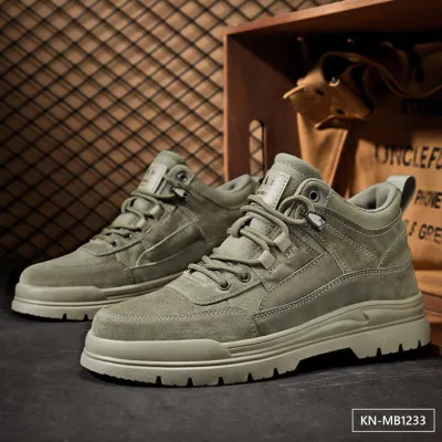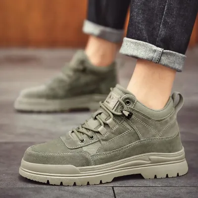 Color: The boots come in classic army green, versatile sand, and sleek black, allowing for various style choices.Upper Material: The genuine cow suede leather upper offers a durable and stylish finish.Outsole Material: The rubber outsole provides robust grip and long-lasting wear on different surfaces.Insole Material: The PU leather insole ensures a cushioned and comfortable experience throughout the day.Toe Shape: The round head design of the toe adds comfort and allows for natural toe movement.Closure Type: The lace-up closure provides a customizable fit and secure support.Pattern Type: The solid pattern of the boots delivers a timeless and versatile look.Features: The boots boast breathable, wear-resistant, lightweight, and anti-slip properties to enhance overall functionality and comfort.