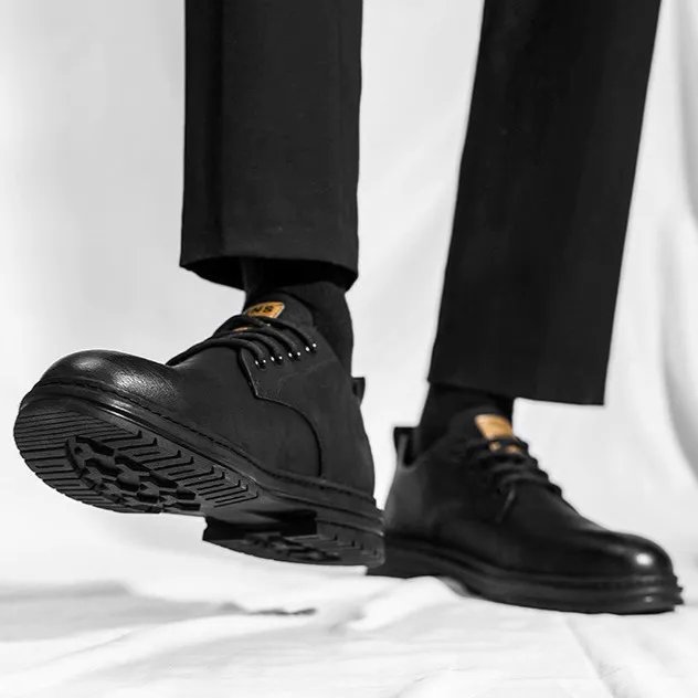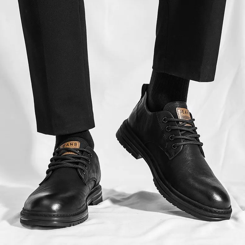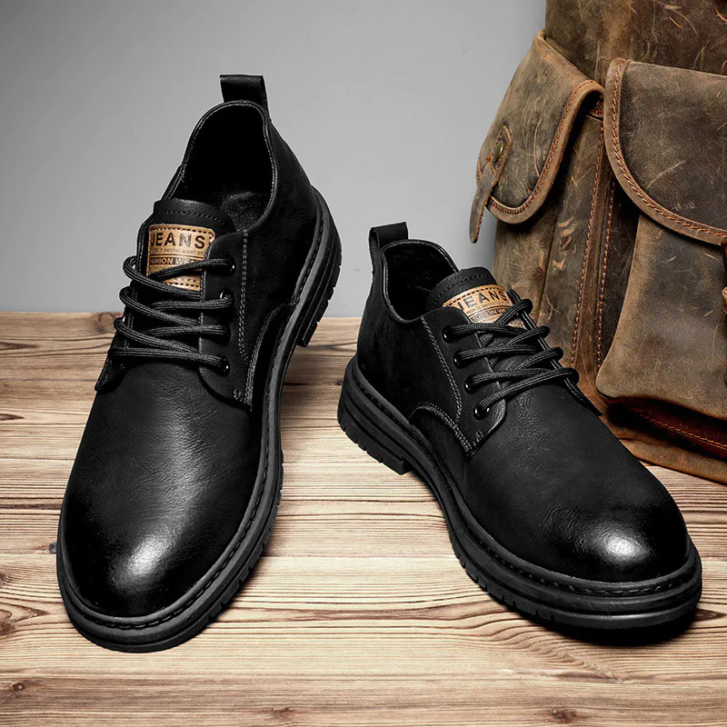 Color: The shoe comes in classic blackUpper Material: Microfiber leather constructs the shoe's upper, ensuring durability and a modern appearance.Outsole Material: A rubber sole provides reliable traction and durability.Insole Material: PU leather lines the insole, offering comfort and support throughout wear.Toe Shape: Designed with a round head toe shape, the shoe prioritizes comfort and natural foot movement.Closure Type: It features a lace-up closure for a secure and adjustable fit.Pattern Type: Displaying a solid pattern, the shoe maintains a clean and timeless design.Features: Engineered for breathability, wear-resistance, lightweight feel, and anti-slip properties, suitable for various activities and everyday use.