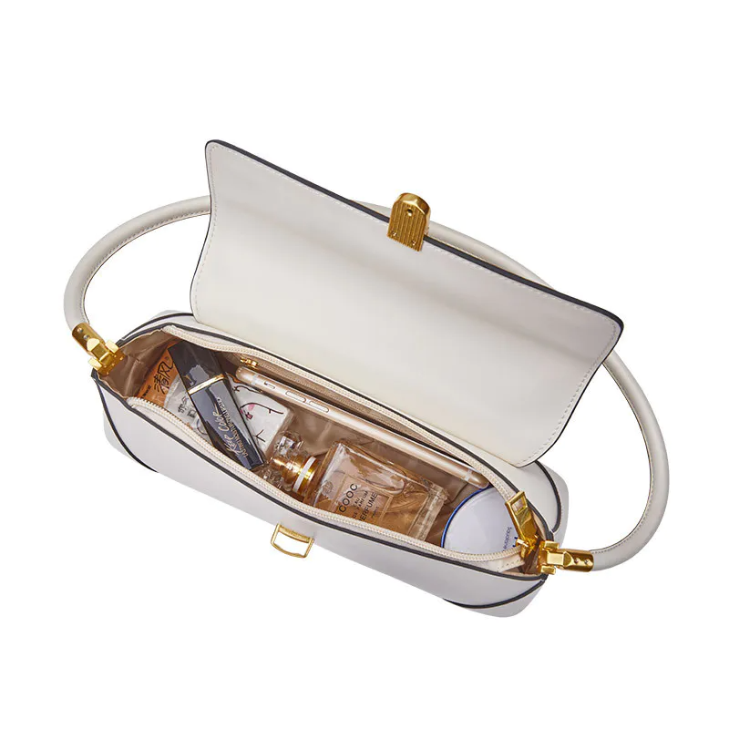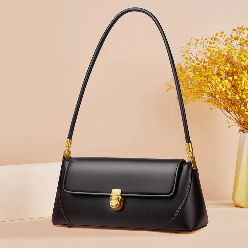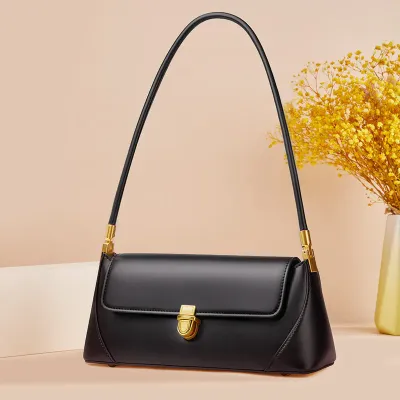 Color: The handbag is styled in a classic black, providing a versatile and sophisticated look.Upper Material: Leather covers the exterior, ensuring a sleek and enduring quality.Cortical Features: The interior is lined with polyester, offering a smooth and easy-to-maintain surface.Bag Trend Style: The fresh and sweet design adds a charming and modern aesthetic to the bag.Brand: William POLO creates this handbag, renowned for its stylish and high-quality craftsmanship.Shape: The horizontal rectangular shape delivers a practical and contemporary silhouette.Opening Method: A lock closure secures the bag while adding a polished and elegant touch.Lifting Method: The luxury handle ensures both comfortable carrying and a touch of sophistication.Pattern: The solid color pattern accentuates the bag’s clean and refined appearance.Hardness: The soft hardness provides a comfortable and flexible feel, enhancing usability.Size: With dimensions of 27.5 cm in length and 11.5 cm in width, the bag offers a spacious yet sleek design.