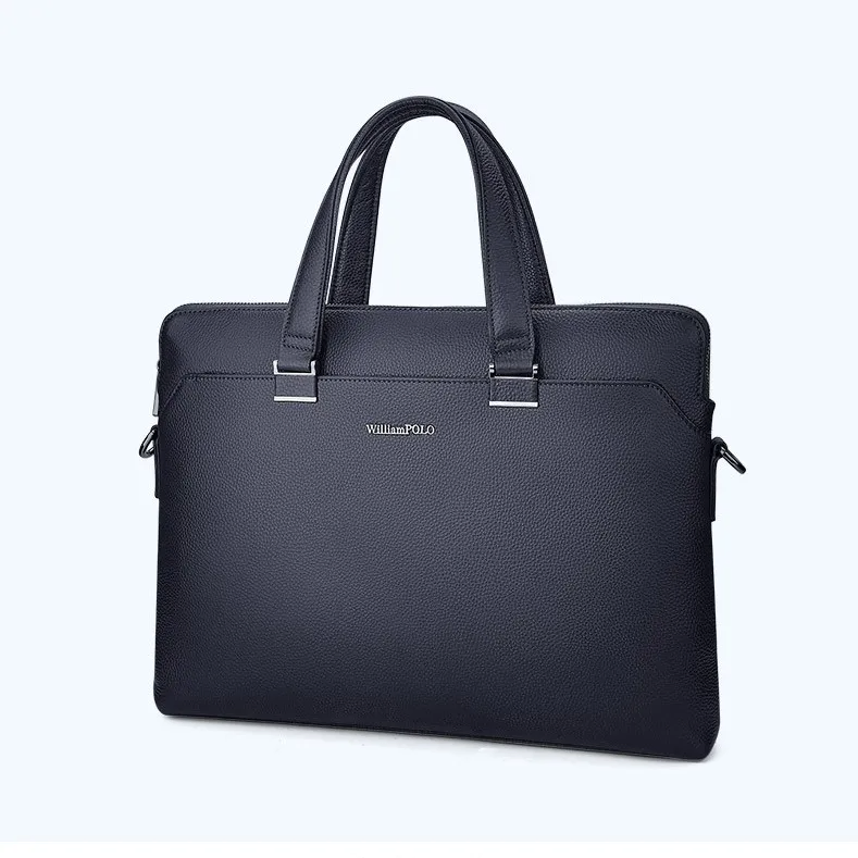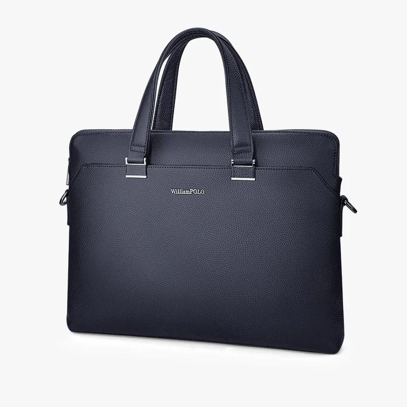 Brand: William POLO designs this bag with a commitment to quality and style.Upper Material: The bag features genuine leather for a luxurious and durable exterior.Number of Shoulder Straps: It includes a single shoulder strap for convenient carrying.Opening Method: A secure zipper ensures easy access and closure.Hardness: The bag offers a soft feel, providing comfort and flexibility.Shape: The handbag shape makes it a versatile choice for various occasions.Pattern: It displays a solid color pattern for a classic and timeless look.Lining Material: The polyester lining enhances the interior's durability and ease of maintenance.Size: Measuring 38.5 cm by 28 cm by 6 cm, the bag provides ample space while maintaining a compact profile.Features: It includes a multi-function design and a dedicated 14” computer compartment for practical use.Weight: Weighing only 1 kg, the bag remains light and easy to carry.