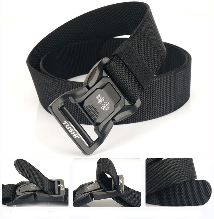 Buckle Color: The belt is equipped with a stylish buckle in either black or space grey.Belt Color: It is offered in two distinct colors: black and army green.Brand: This belt is a product of the Lion brand.Material: It is constructed from resilient textile nylon.Fastening Method: The buckle ensures a secure and reliable fastening.Lining: A polyester lining enhances the belt's durability and comfort.Pattern: The belt features a clean, solid color design.Length: Measuring 125 ”, the belt provides a customizable fit.Width: With a width of 4.3 ”, the belt delivers a robust and sturdy feel.Weight: The belt is lightweight at 170 grams, making it comfortable for everyday wear.