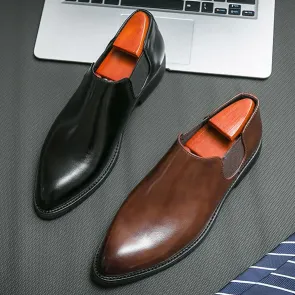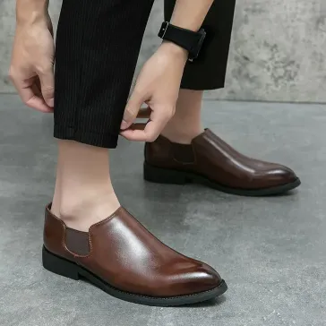 Color: These shoes are available in a stylish combination of black and brown, offering versatility and sophistication in your wardrobe.Upper Material: Crafted from high-quality PU leather, the shoes feature a sleek and durable upper that is easy to maintain and resistant to scuffs and scratches.Outsole Material: The rubber outsoles provide excellent traction and grip on various surfaces, ensuring stability and durability for all-day wear.Insole Material: Inside, the shoes are lined with PU leather insoles that offer cushioning and support, ensuring comfort throughout the day.Toe Shape: The shoes are designed with a round head toe shape, providing ample space and comfort for the toes, ideal for extended wear.Closure Type: Featuring a slip-on style, these shoes offer convenience and ease of wear, making them suitable for quick transitions and casual settings.Pattern Type: With a solid color design, these shoes maintain a classic and timeless appearance, perfect for both formal occasions and everyday wear.Features: This shoe is designed to be breathable, wear-resistant, lightweight, and anti-slip, making it suitable for various activities.