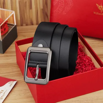 Buckle Color: The buckle showcases a sophisticated gunmetal hue.Belt Color: The belt features a sleek and versatile black.Brand: William Polo manufactures this high-quality belt.Upper Material: The belt is crafted from luxurious genuine leather.Fastening Method: The automatic buckle allows for convenient and precise adjustments.Lining: The belt is lined with soft polyester for added comfort.Pattern: The belt offers a clean, solid color appearance.Length: The belt measures a generous 120 ” for a customizable fit.Width: The belt has a width of 3.8 ”, providing a substantial yet stylish look.Weight: The belt weighs 350 grams, striking a balance between durability and lightness.