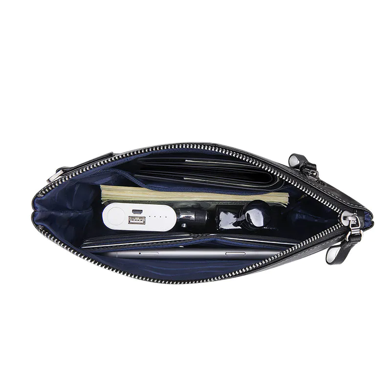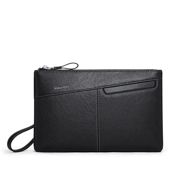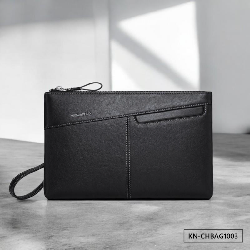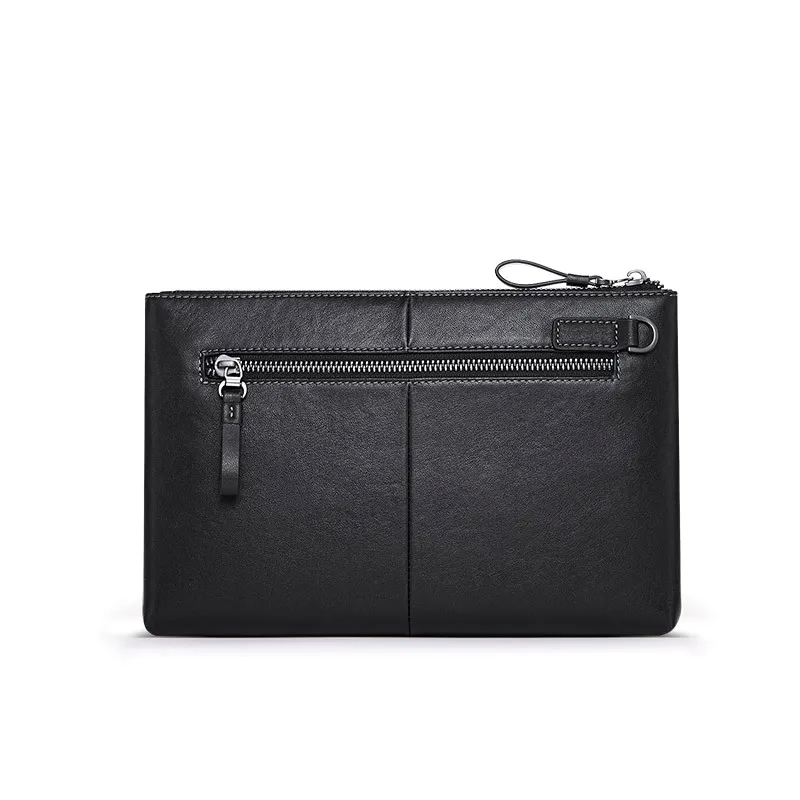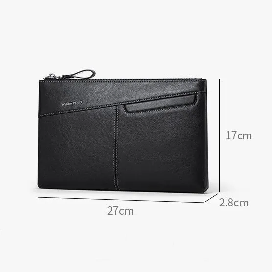 Color: The bag is designed in a classic and elegant black.Upper Material: Genuine leather construction provides a luxurious and durable exterior.Opening Method: You open and close the bag effortlessly with its smooth zipper.Pattern: The solid color pattern gives the bag a minimalist and timeless appeal.Lining Material: The polyester lining ensures a soft and protective interior.Features: The bag is built to withstand wear and absorb shocks, ensuring durability.Accommodated Mobile/Tab Size: The bag comfortably fits devices up to 8 ” in size.Size: With dimensions of 22 ” by 12.5 ” by 5.2 ”, the bag offers compact yet efficient storage.Weight: Weighing 500 grams, the bag remains light and easy to carry.