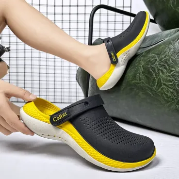 Color: The shoe stands out in Sea Blue Yellow, Gray Royal Blue, and Black and Red color combinations.Upper Material: TPU (Thermoplastic polyurethane) forms the durable and flexible material of the shoe's upper.Outsole Material: The outsole of the shoe is made from TPR (Thermoplastic Rubber), providing excellent grip and durability.Toe Shape: It features a close toe design, offering protection and comfort.Closure Type: You can easily slip on the shoe with its convenient slip-on closure.Pattern Type: The shoe showcases a solid pattern, adding to its stylish and modern appeal.Features: The shoe is waterproof, breathable, wear-resistant, lightweight, and equipped with anti-slip properties, ensuring comfort and reliability in various conditions.