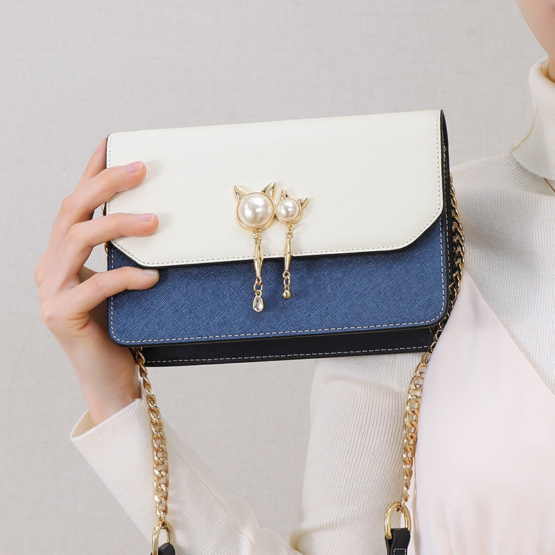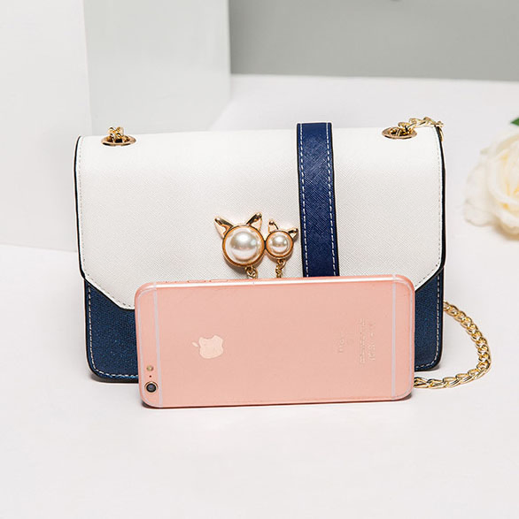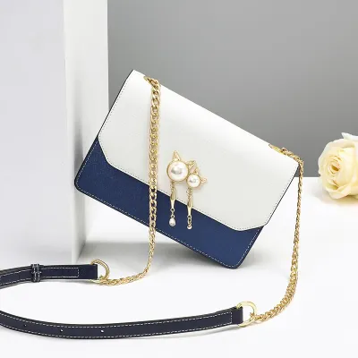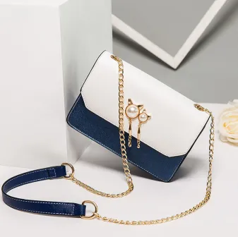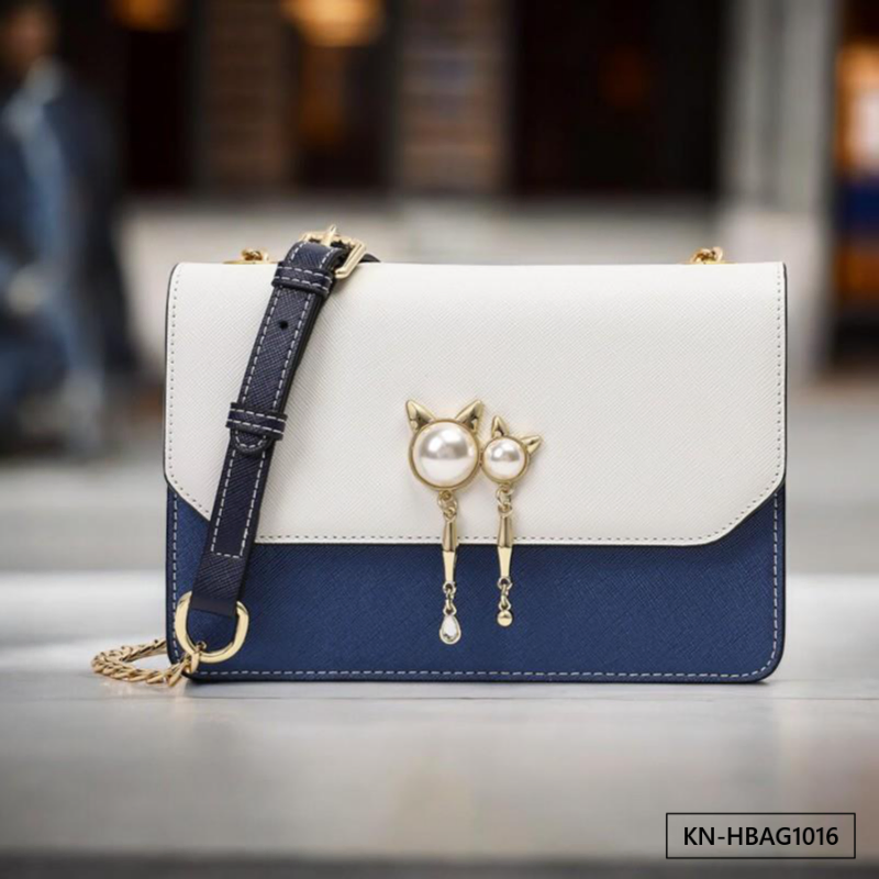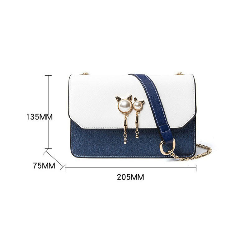 Color: The handbag is available in striking Blue and White or charming Pink and White combinations.Upper Material: It is crafted from genuine C-o-w-h-i-d-e leather for a luxurious and durable finish.Hardness: The soft hardness provides a comfortable and flexible feel.Number of Shoulder Straps: It features a single shoulder strap for ease and practicality.Opening Method: Access your belongings securely with the sophisticated lock closure.Lining Texture: The interior is lined with PU Leather, offering a smooth and refined touch.Pattern Type: The solid pattern ensures a timeless and versatile style.Size: Measuring 8.07" (L) x 5.31" (H) x 2.95" (W), this handbag is compact yet offers ample functionality.