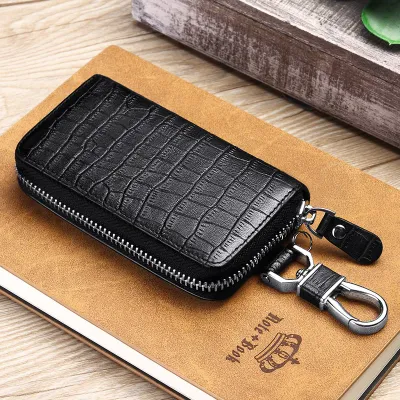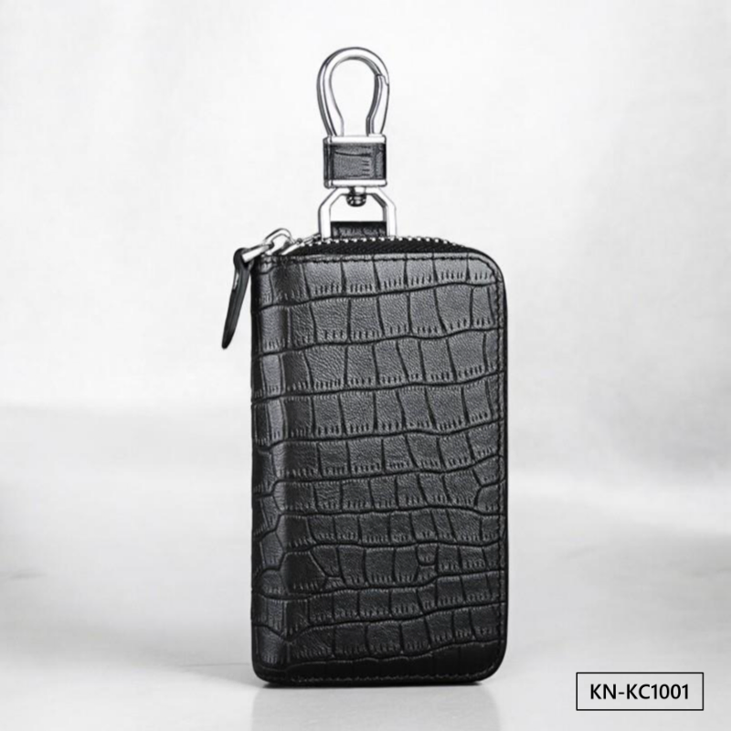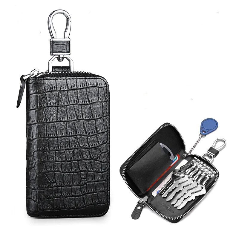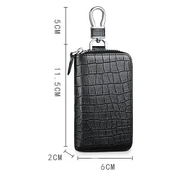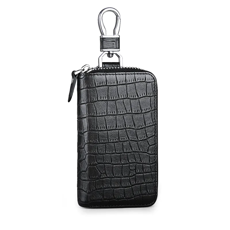 Color: This keycase showcases a sleek black embossed finish that adds a touch of elegance.Brand: William Polo crafts this keycase with precision and style.Upper Material: The keycase is made from genuine leather, offering durability and luxury.Opening Method: It features a secure zipper closure for easy access.Folding: This keycase folds neatly into a compact 2-fold design.Lining: The interior is lined with soft polyester, ensuring your keys and cards are protected.Internal Feature: The keycase includes designated positions for your house key, car key, and cards.Pattern: It sports a solid color design, emphasizing simplicity and sophistication.Size: The dimensions are 11.5 ” by 6 ” by 2 ”, making it compact yet spacious.Weight: Weighing 350 grams, this keycase feels substantial and sturdy in hand.