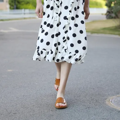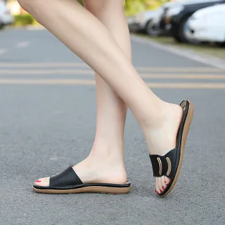 Color: The sandal is offered in versatile black, rich brown, and soft pink.Upper Material: Microfiber leather provides a modern and durable finish.Outsole Material: The TPR sole ensures flexible movement and reliable traction.Insole Material: PU leather delivers comfortable cushioning for extended wear.Toe Shape: The open toe design adds a fashionable and airy feel.Closure Type: The slip-on style allows for quick and easy wearing.Heel Height: The 2 cm heel height offers a subtle elevation with lasting comfort.Pattern Type: The solid color pattern maintains a clean and classic aesthetic.Features: The sandal combines breathability, wear-resistance, a lightweight design, and anti-slip properties for practical and stylish wear.