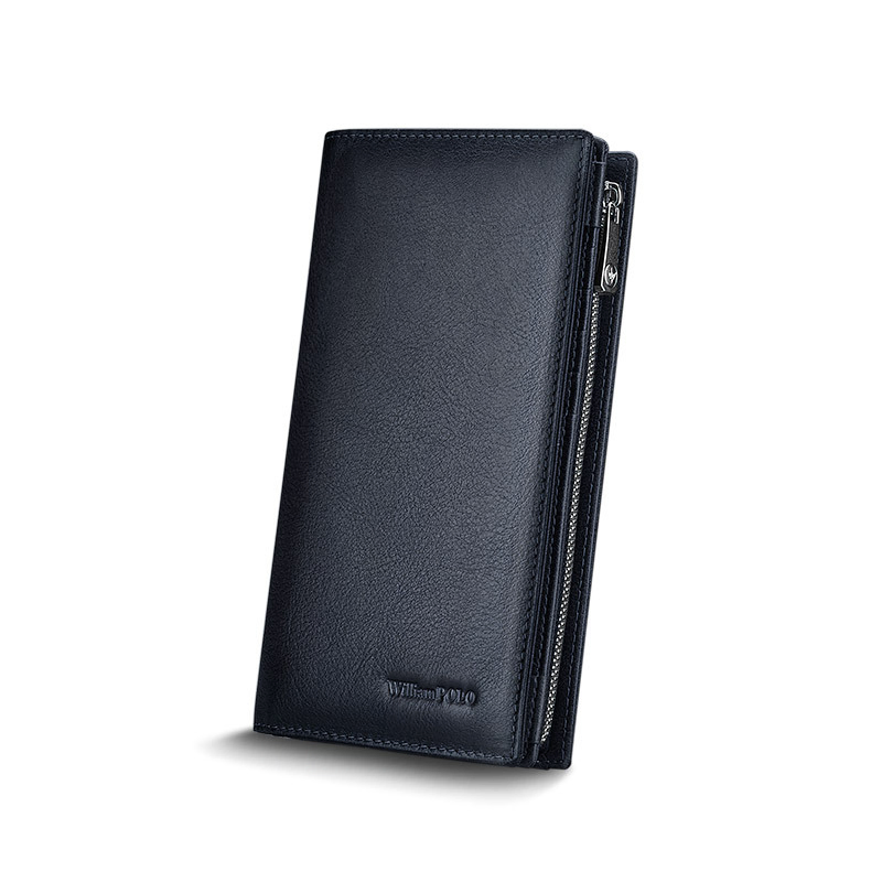 Color: The wallet features a sophisticated gray-blue color, adding a touch of modern elegance.Brand: Designed by William POLO, it reflects the brand’s commitment to luxury and craftsmanship.Upper Material: Made from genuine leather, the wallet offers both durability and a high-end feel.Folding: Its 3-fold design provides ample organization while maintaining a compact and sleek form.Pattern: The solid color ensures a clean and classic look that complements any style.Hardness: The wallet’s soft texture enhances comfort and flexibility in everyday use.Length: Measuring 7.55 inches, it offers generous space for your essentials without being bulky.Width: With a width of 3.86 inches, the wallet maintains a slim profile that fits easily in your pocket.