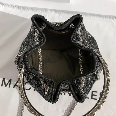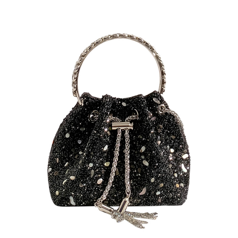 Color: The handbag comes in a sleek black color, providing a timeless and versatile look.Upper Material: It features PU leather as the upper material, ensuring a refined and durable surface.Hardness: The bag has a soft texture, offering comfort and flexibility.Number of Shoulder Strap: It includes a single shoulder strap for convenient and hands-free carrying.Opening Method: The handbag uses a drawstring closure, adding a casual and functional touch.Lining Texture: The interior is lined with PU leather, complementing the handbag’s sophisticated exterior.Pattern Type: It has a solid pattern, which enhances its classic and understated design.Size: Measuring 7.08" in length, 6.29" in height, and 4.33" in width, the handbag provides a compact yet practical size.