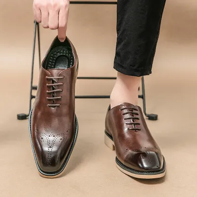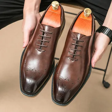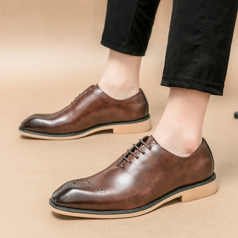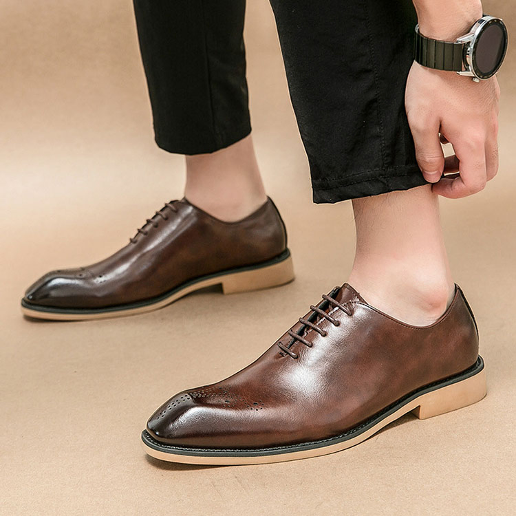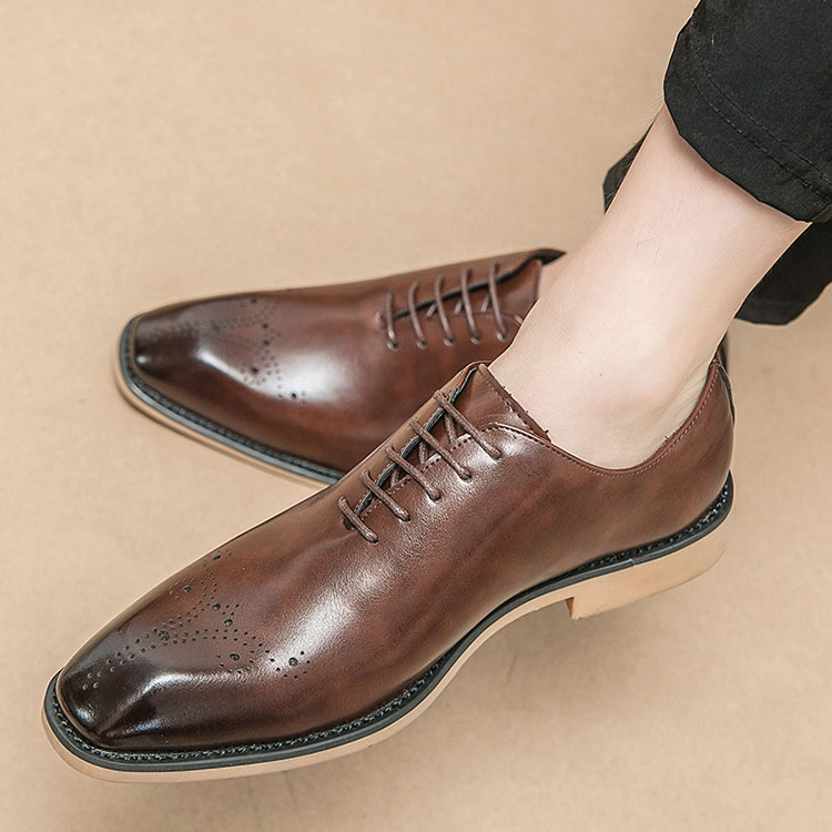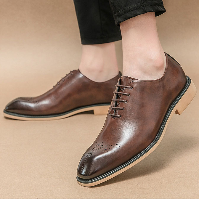 Shock-Absorbing Rubber Sole Men’s Leather Shoes