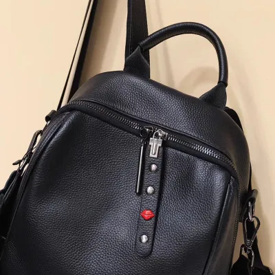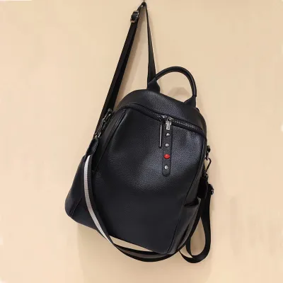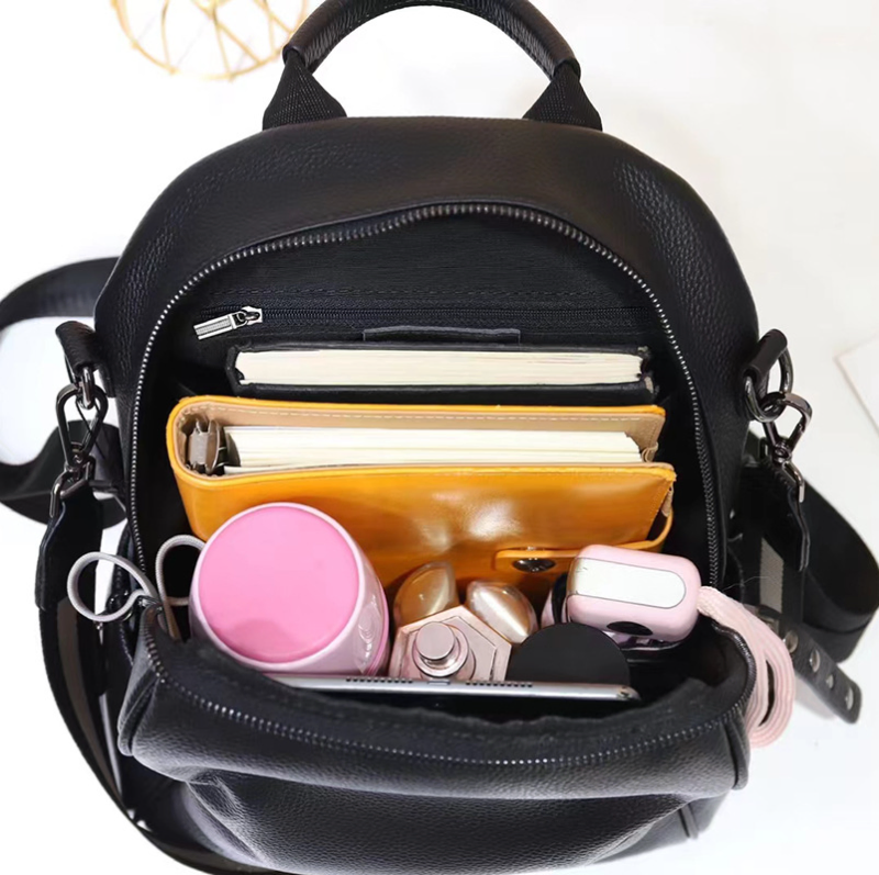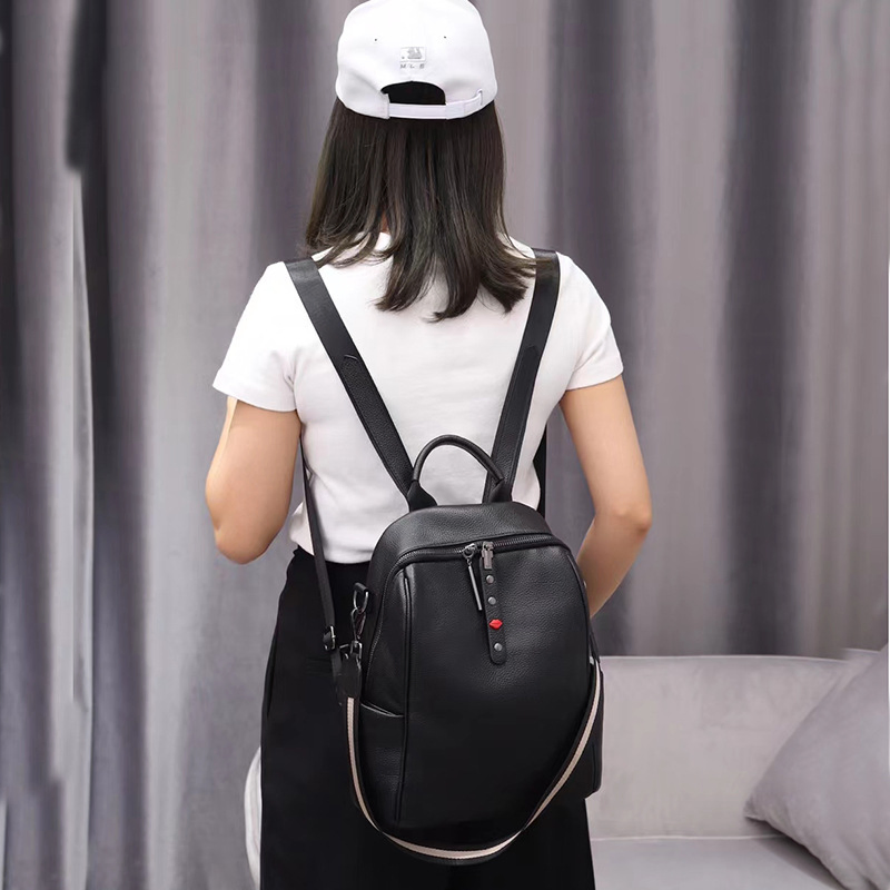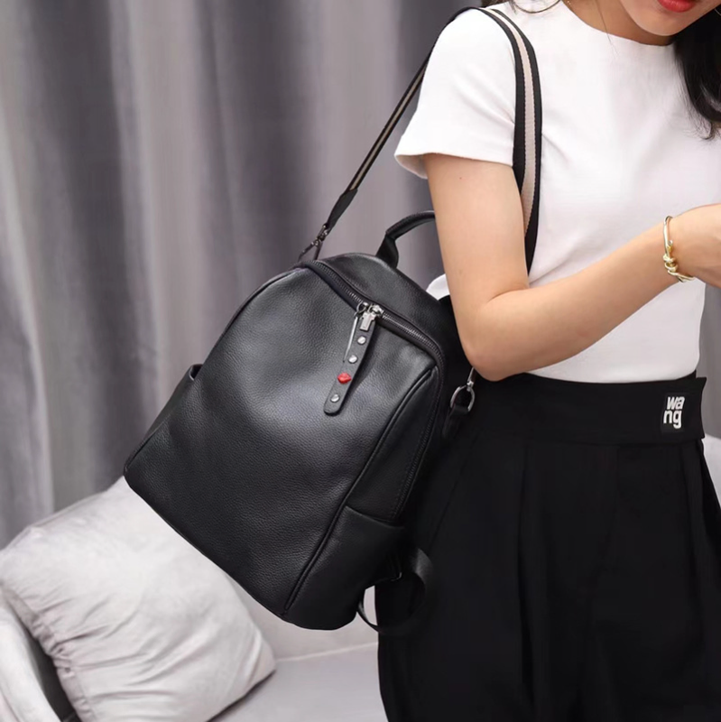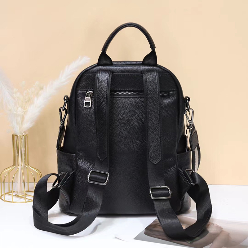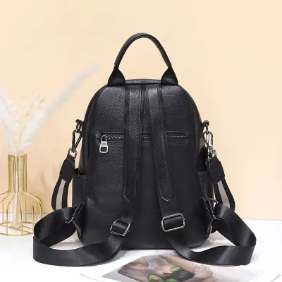 Color: The backpack is crafted in a classic black, offering a versatile and elegant look.Upper Material: Genuine leather delivers a premium and long-lasting exterior.Hardness: The soft material ensures a comfortable and flexible touch.Number of Shoulder Straps: Double shoulder straps provide even weight distribution for easy carrying.Opening Method: A zipper closure ensures your belongings stay secure while allowing quick access.Lining Texture: PU leather lining adds a smooth and stylish interior touch.Pattern Type: The solid pattern offers a sleek and timeless design.Accommodated Computer Size: The backpack fits a 10-inch computer, making it suitable for everyday use.Size: With dimensions of 11.02 inches in length, 11.81 inches in height, and 5.90 inches in width, it offers a practical size for carrying essentials.