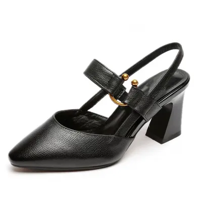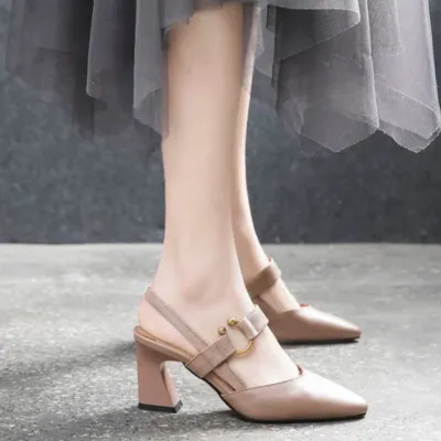 Color Options: Offered in elegant beige, classic black, and versatile camel for a range of stylish choices.Upper Material: Made from genuine C-o-w-h-i-d-e leather for a luxurious and durable finish.Outsole Material: The rubber sole ensures reliable traction and long-lasting wear.Insole Material: PU leather insoles provide comfortable cushioning for all-day comfort.Toe Shape: The pointed toe design adds a sophisticated and fashionable touch.Closure Type: Buckle closure allows for a secure and adjustable fit.Heel Height: The 5 cm heel provides a chic lift while maintaining overall comfort.Pattern Type: The solid pattern delivers a sleek and timeless look.Additional Features: These sandals are breathable, wear-resistant, lightweight, and feature an anti-slip sole for enhanced stability.