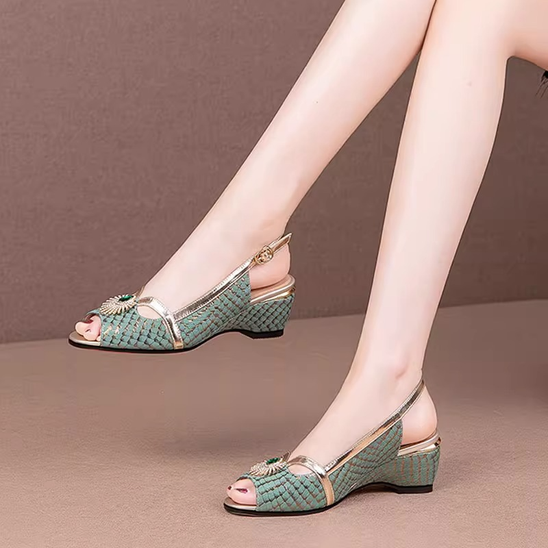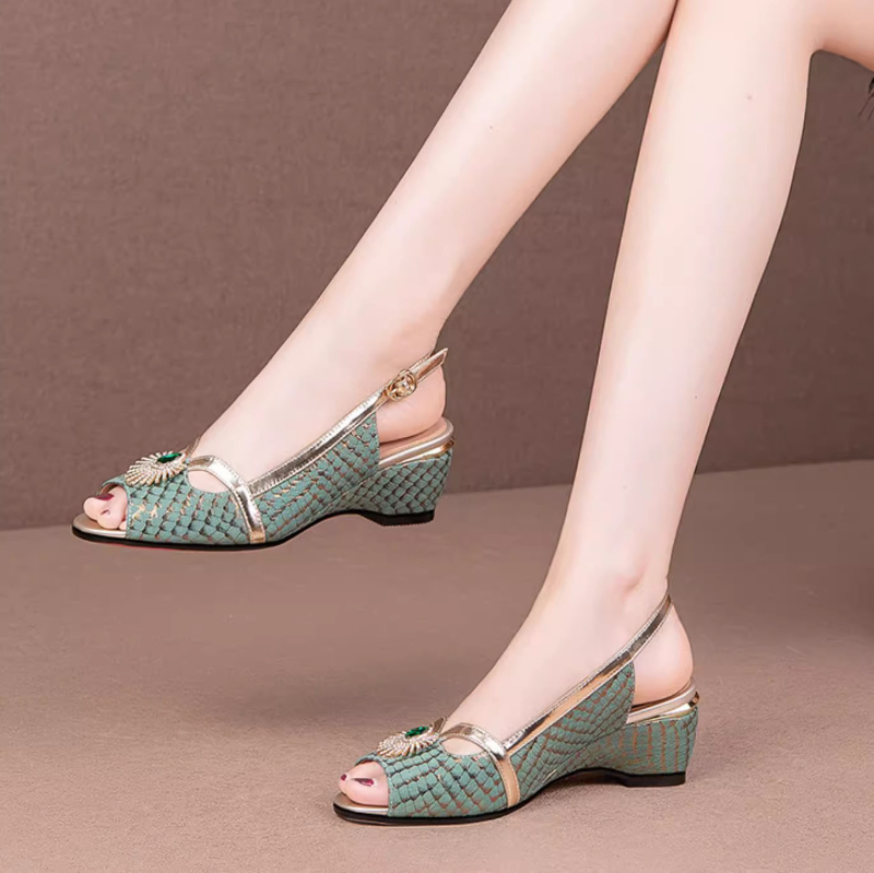 Color Options: Available in fresh green and elegant off-white for a contemporary touch.Upper Material: The PU leather upper adds a sleek and durable finish.Outsole Material: The rubber sole offers excellent grip and long-lasting durability.Insole Material: The PU leather insole provides soft, comfortable cushioning.Toe Shape: The pointed toe design enhances a sophisticated and stylish look.Closure Type: The buckle closure ensures a secure fit with an adjustable strap.Heel Height: The 5 cm heel delivers a flattering lift while maintaining comfort.Pattern Type: The solid pattern keeps the design versatile and refined.Additional Features: These sandals are breathable, wear-resistant, lightweight, and include an anti-slip sole for added stability.