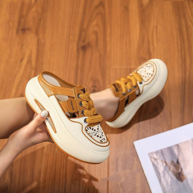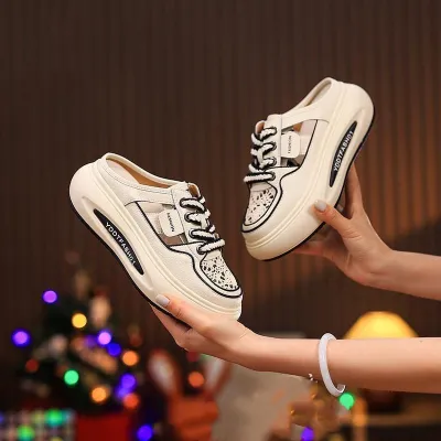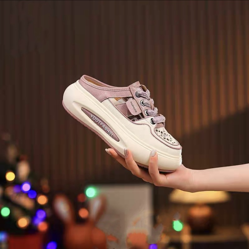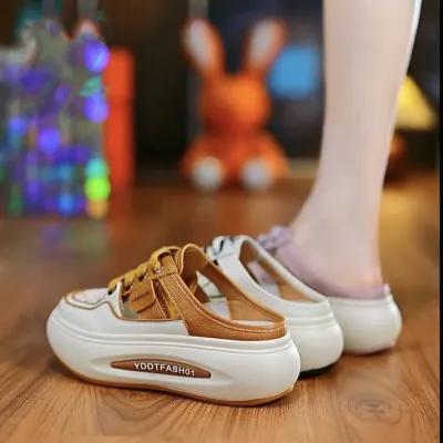 Color Options: Available in khaki, purple, and white for a variety of fashionable choices.Upper Material: The PU leather upper offers a sleek appearance with durability.Outsole Material: The rubber sole ensures reliable grip and long-lasting performance.Insole Material: PU leather insoles provide comfortable cushioning for all-day wear.Toe Shape: The round head toe design guarantees a comfortable and classic fit.Closure Type: Slip-on style allows for effortless and convenient wear.Heel Height: The 4 cm heel provides a stylish lift while maintaining comfort.Pattern Type: The solid pattern offers a clean and versatile look.Additional Features: These sandals are breathable, wear-resistant, lightweight, and feature an anti-slip sole for secure footing.