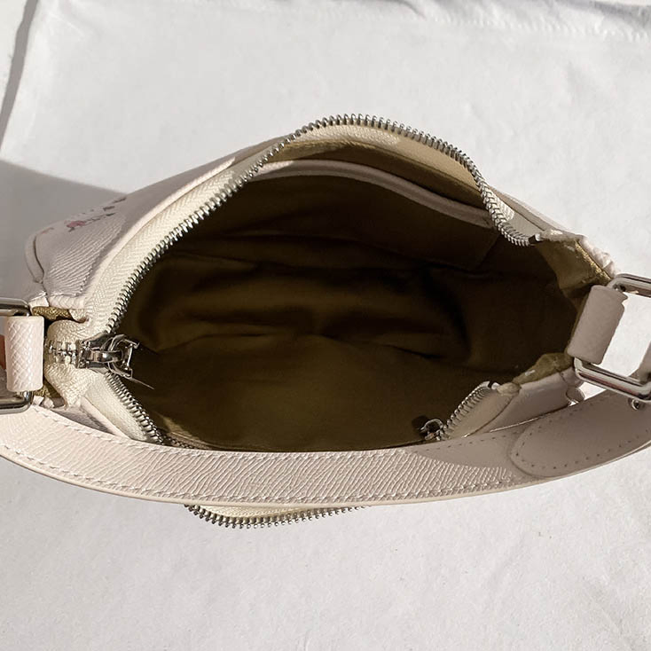 Color: The handbag is crafted in a clean white color, offering a fresh and elegant look.Upper Material: It is made from PU leather, providing a sleek and durable exterior.Hardness: The bag features a soft texture, ensuring comfort and ease of use.Number of Shoulder Strap: It includes a single shoulder strap, allowing for convenient and hands-free carrying.Opening Method: The handbag secures with a zipper, providing both security and practicality.Lining Texture: The interior is lined with PU leather, enhancing the overall luxurious feel.Pattern Type: It has a solid pattern, which contributes to its classic and versatile design.Size: Measuring 7.87" in length, 6.49" in height, and 2.75" in width, the handbag offers a compact yet functional size.