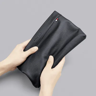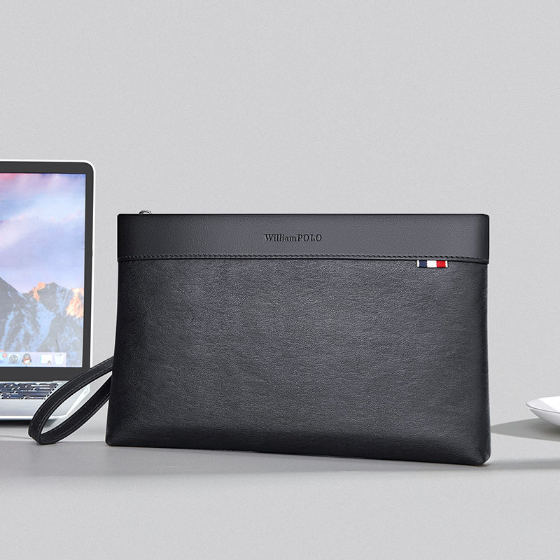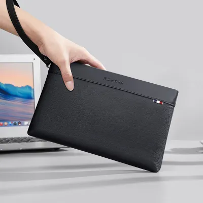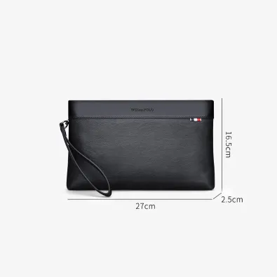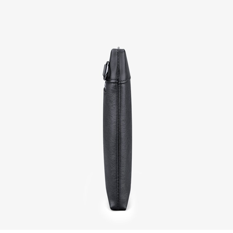 Color: The bag comes in a sleek black color for a sophisticated look.Upper Material: The outer layer is crafted from genuine leather, providing both elegance and durability.Opening Method: A zipper closure ensures the bag's contents stay secure and accessible.Pattern: It features a solid color pattern, offering a timeless and versatile style.Lining Material: The bag’s interior is lined with polyester, adding a layer of smooth protection.Features: The bag is designed to be wear-resistant and shock-resistant, extending its lifespan.Accommodated Mobile/Tab Size: It comfortably fits devices up to 9 ” in size.Size: The dimensions of 10.62 ” in length, 6.49 ” in height, and 0.98 ” in width provide a sleek, compact profile.Weight: Weighing 450 grams, the bag delivers a lightweight yet sturdy feel.