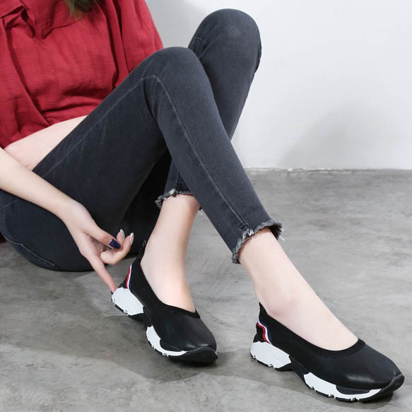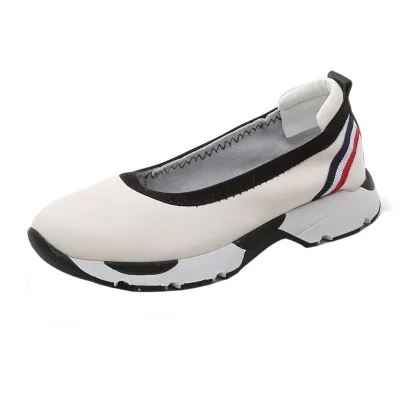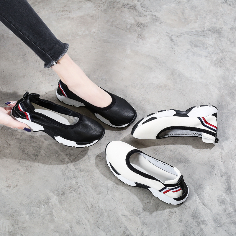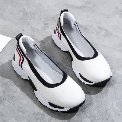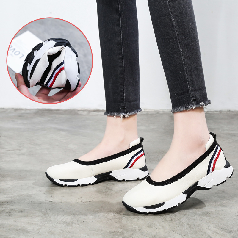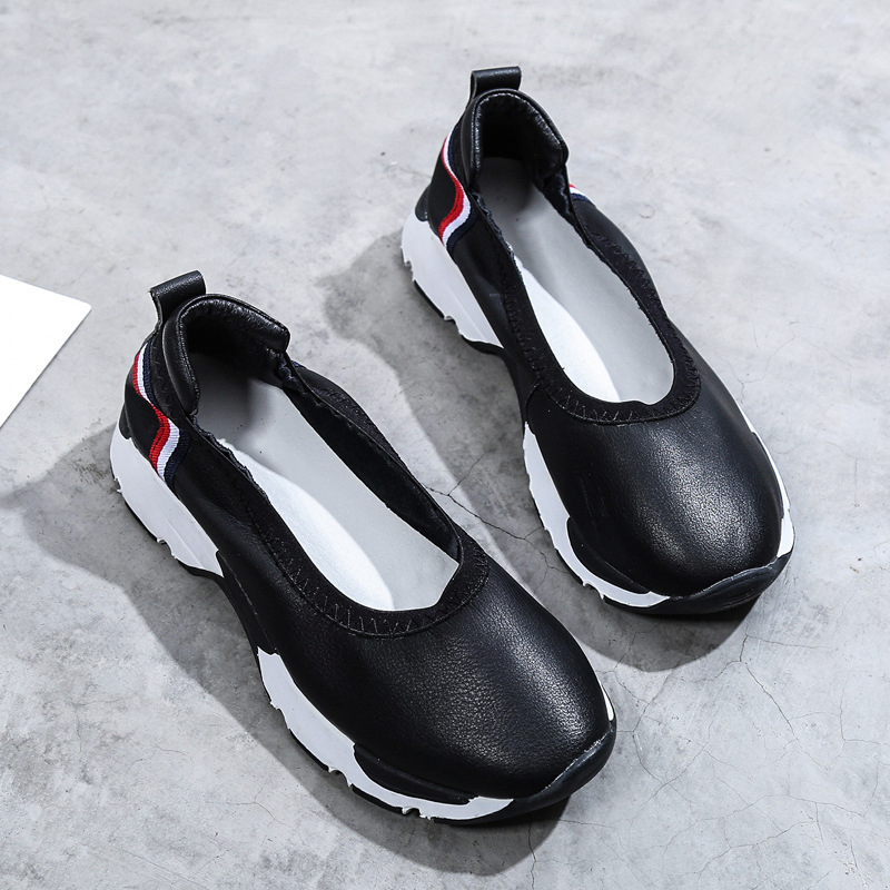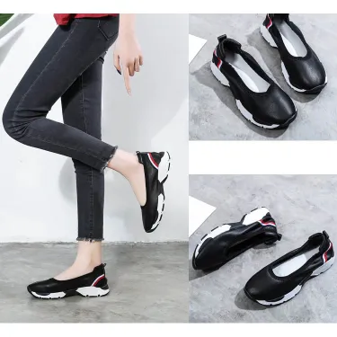 Color: The shoe is available in Black and Off White, providing elegant and versatile color options.Upper Material: Genuine leather forms the upper, ensuring a high-quality and durable finish.Outsole Material: The rubber sole offers reliable traction and long-lasting wear.Insole Material: PU leather lines the insole, enhancing comfort and cushioning.Toe Shape: The round head design provides a comfortable and accommodating fit.Closure Type: The slip-on style allows for effortless and convenient wear.Pattern Type: The solid pattern delivers a classic and streamlined appearance.Features: The shoe features breathability, wear-resistance, a lightweight build, and anti-slip properties for optimal performance and comfort.