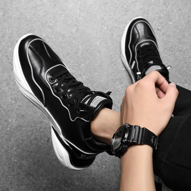 Color: The shoe features a sleek black hue, perfect for versatile styling.Upper Material: It utilizes C-o-w-h-i-d-e leather, ensuring durability and a refined appearance.Outsole Material: Incorporates a rubber foam bottom for lightweight cushioning and flexibility.Insole Material: The insole is crafted from PU leather, providing comfort and support.Toe Shape: Designed with a round head toe shape, optimizing comfort and fit.Closure Type: Secures with a lace-up closure, allowing for a snug and adjustable fit.Pattern Type: Features a solid color design, offering a clean and timeless aesthetic.Features: The shoe is breathable, wear-resistant, lightweight, and equipped with an anti-slip sole for enhanced comfort and stability.