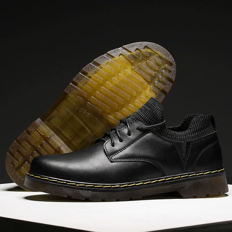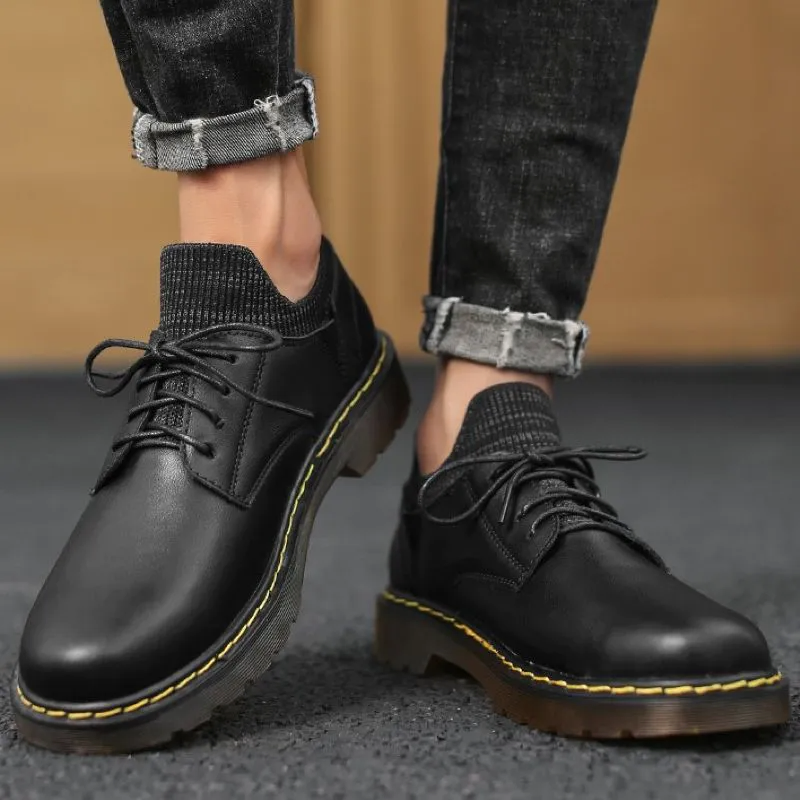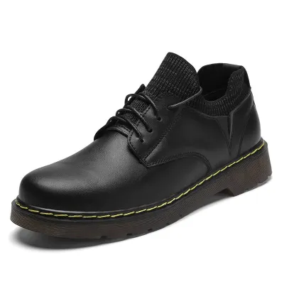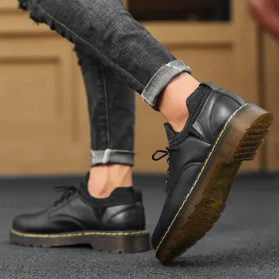 Color: The boots are available in a sleek and versatile black.Upper Material: The upper is crafted from top layer C-o-w-h-i-d-e leather, offering exceptional durability and a refined look.Outsole Material: The rubber sole ensures a strong grip and enduring performance.Insole Material: PU leather combined with weaving on the insole provides added comfort and support.Toe Shape: The round head toe shape guarantees a classic fit with ample room.Closure Type: Lace-up closures allow for a secure and adjustable fit.Pattern Type: The solid pattern contributes to a timeless and straightforward style.Features: The boots are breathable, wear-resistant, lightweight, and equipped with anti-slip properties for reliable functionality.