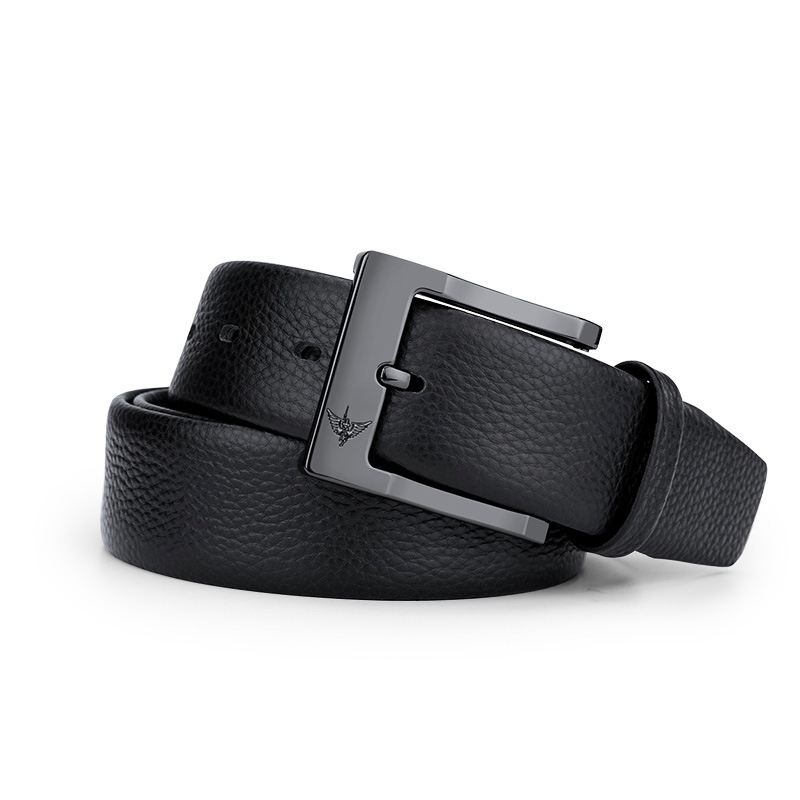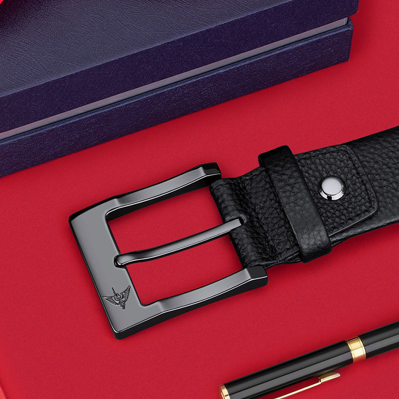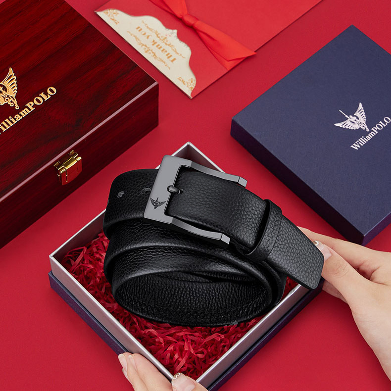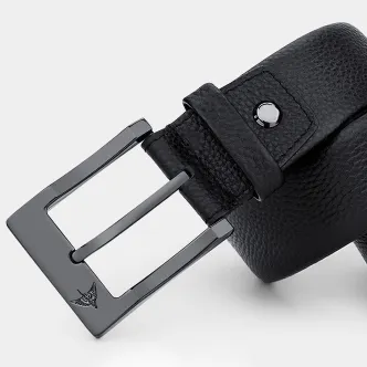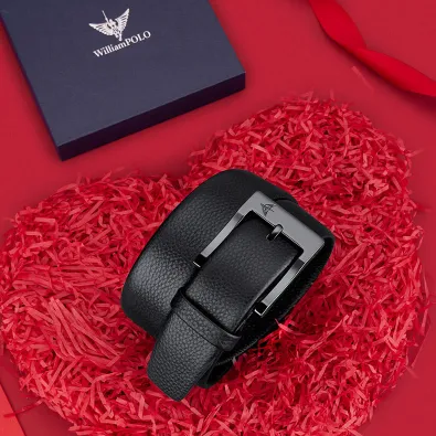 Buckle Color: The buckle blends gunmetal and silver to create a striking and contemporary appearance.Belt Color: The belt features a classic black shade for versatile styling.Brand: William POLO crafts this belt with a focus on elegant design and premium quality.Upper Material: Genuine leather provides both a luxurious texture and lasting durability.Fastening Method: The buckle secures the belt with a traditional and reliable closure.Lining: Polyester lining adds comfort and extends the belt's lifespan.Pattern: The solid color of the belt ensures a sleek and understated look.Length: The belt’s 120 ” length suits a wide range of waist sizes.Width: Measuring 3.8 ” wide, the belt offers a balance of style and practicality.Weight: Weighing 350 grams, the belt strikes a perfect balance between robustness and comfort.