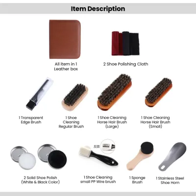 1 Shoe Cleaning Horse Hair Brush (Large): A large horse hair brush is part of the set for thorough cleaning.