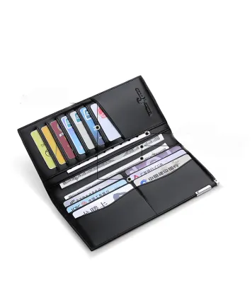 Color: The card holder is designed in a sleek black plain color.